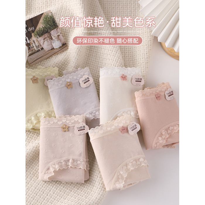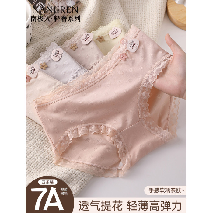 南極人內褲女士純棉襠2025新款性感蕾絲無痕7A抗菌少女生三角短褲