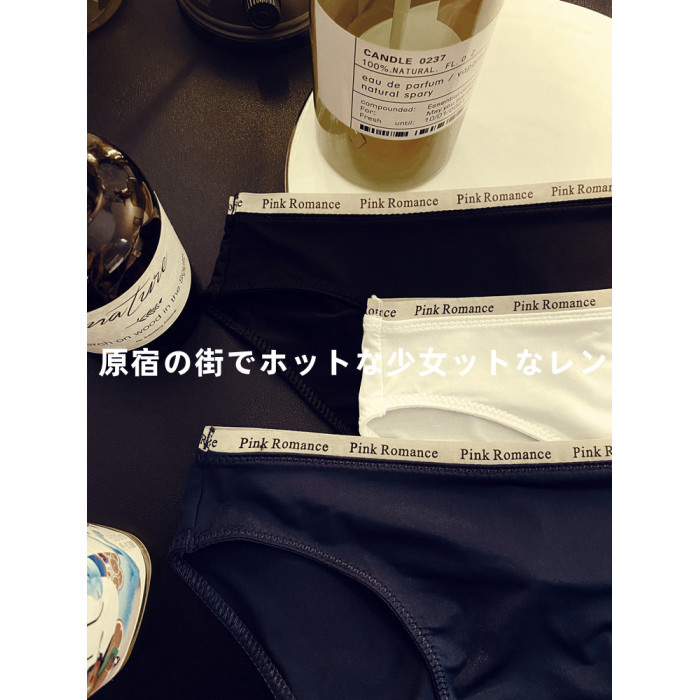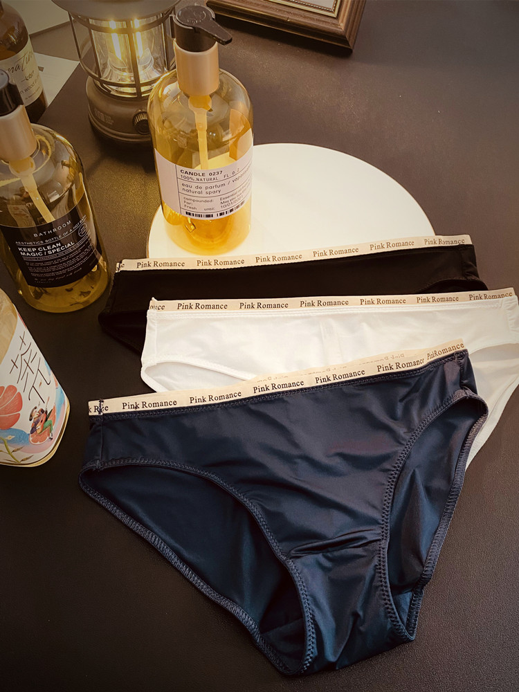 定織面料 時髦歐美女士性感低腰純棉襠內褲女藏藍色冰絲夏季日系
