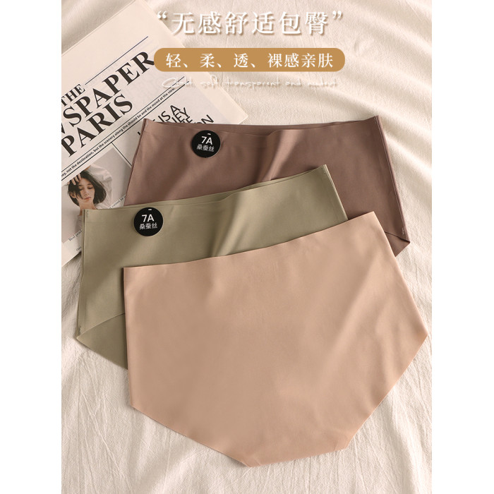 美拉德內褲女士中腰無痕桑蠶絲抗菌襠2025新款運動少女生三角短褲