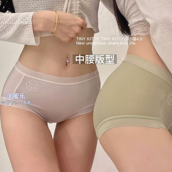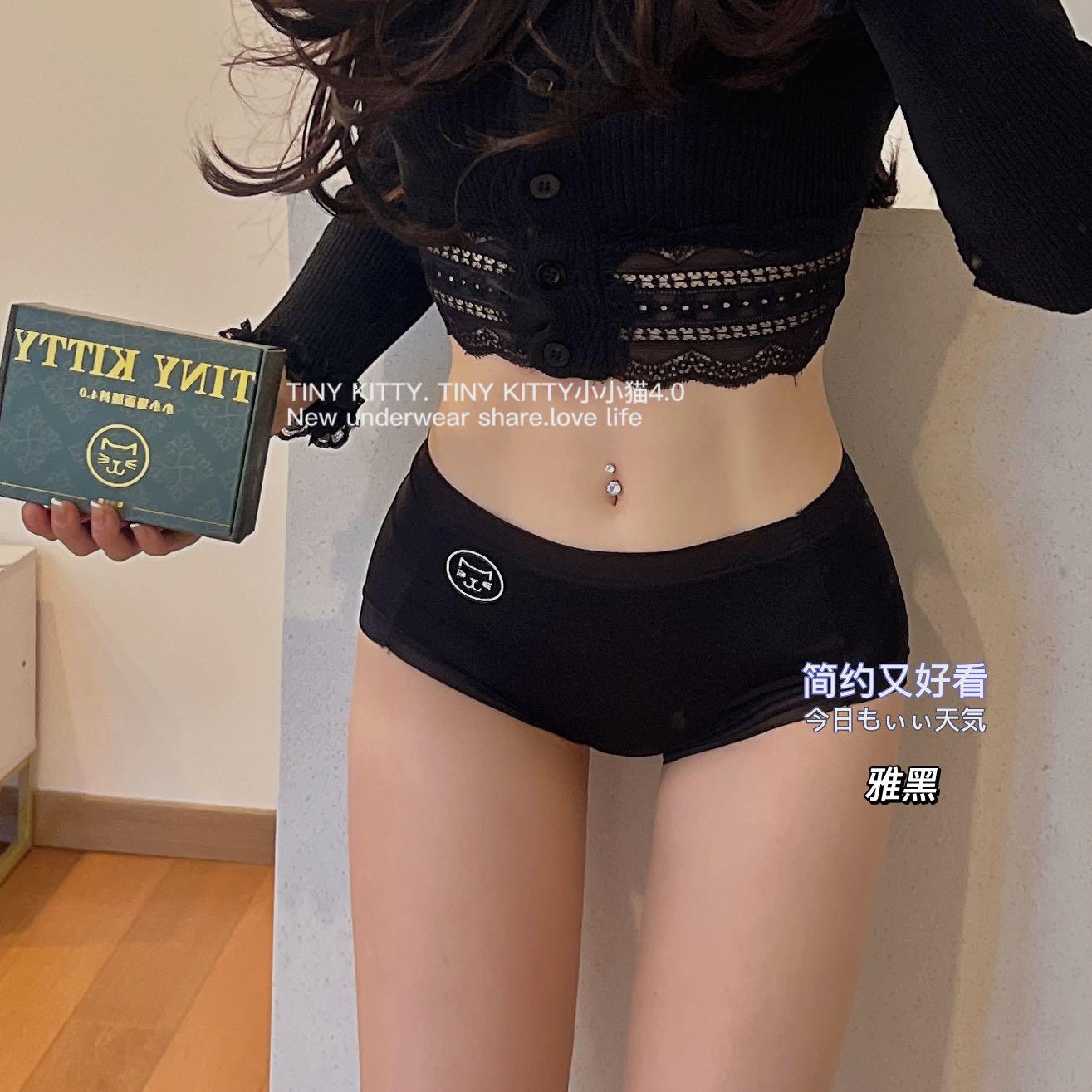 小小貓4.0面膜褲超薄冰絲無痕舒適高彈中腰內褲少女三角褲禮盒裝