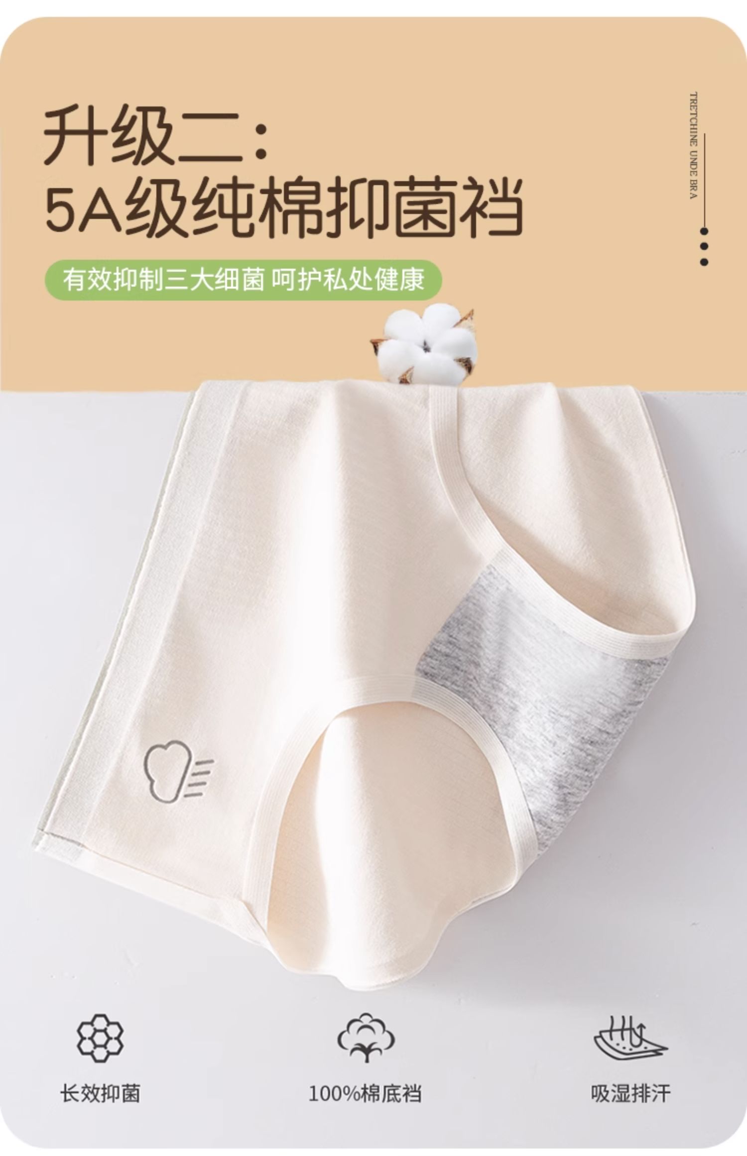 內褲女生純棉抗菌100%全棉襠2023新款日系無痕透氣女士中腰短褲