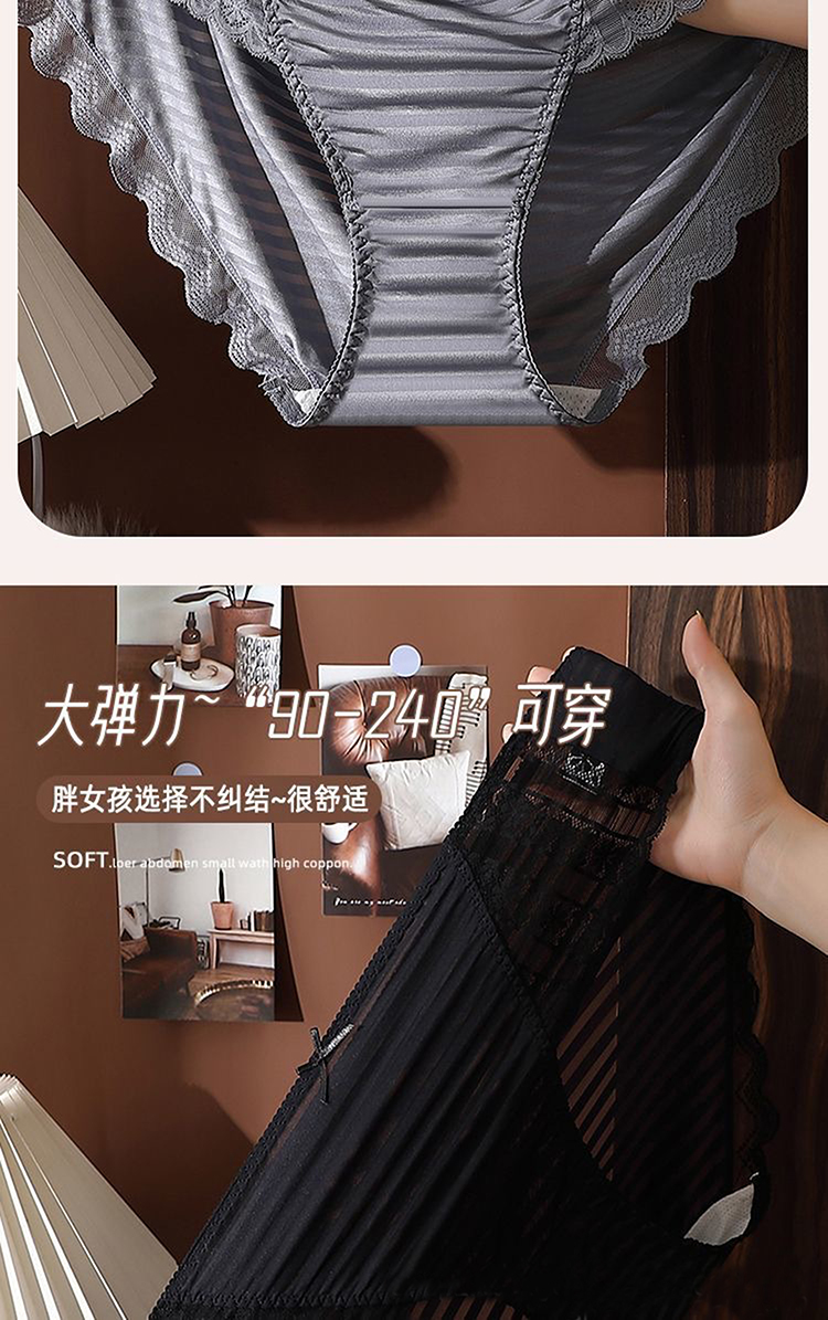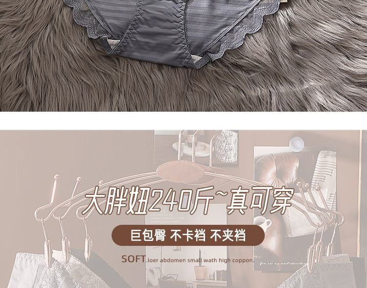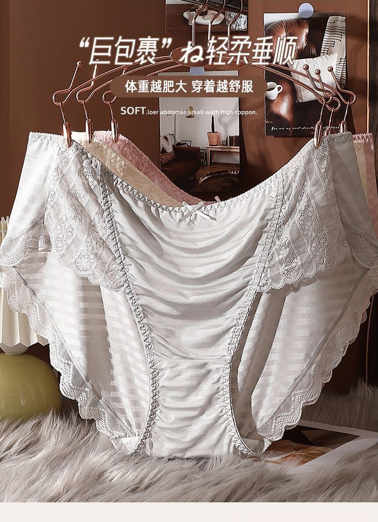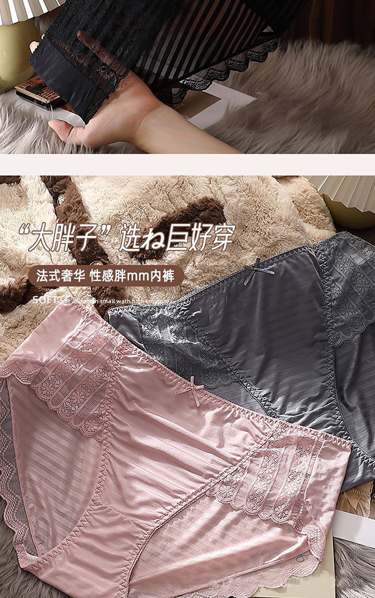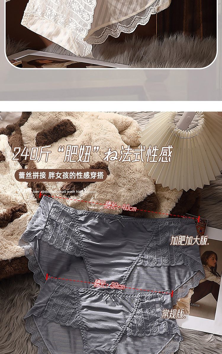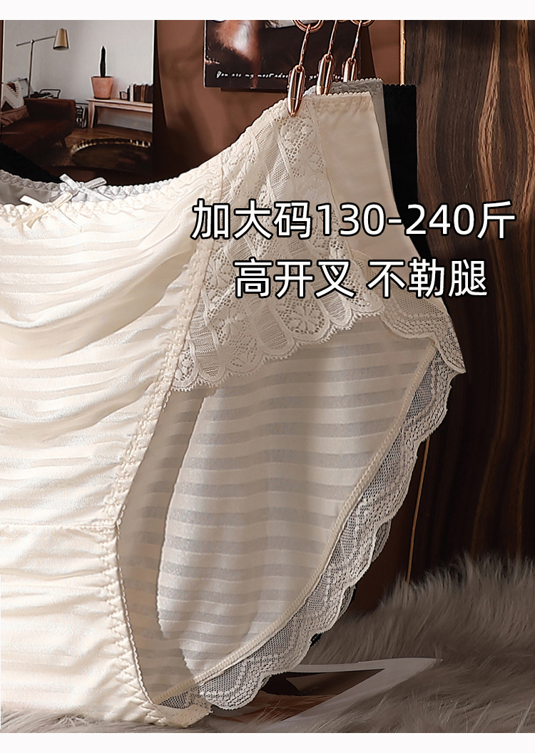 大碼內褲高開叉女200斤性感蕾絲薄款高彈中高腰胖mm透氣襠不勒腿