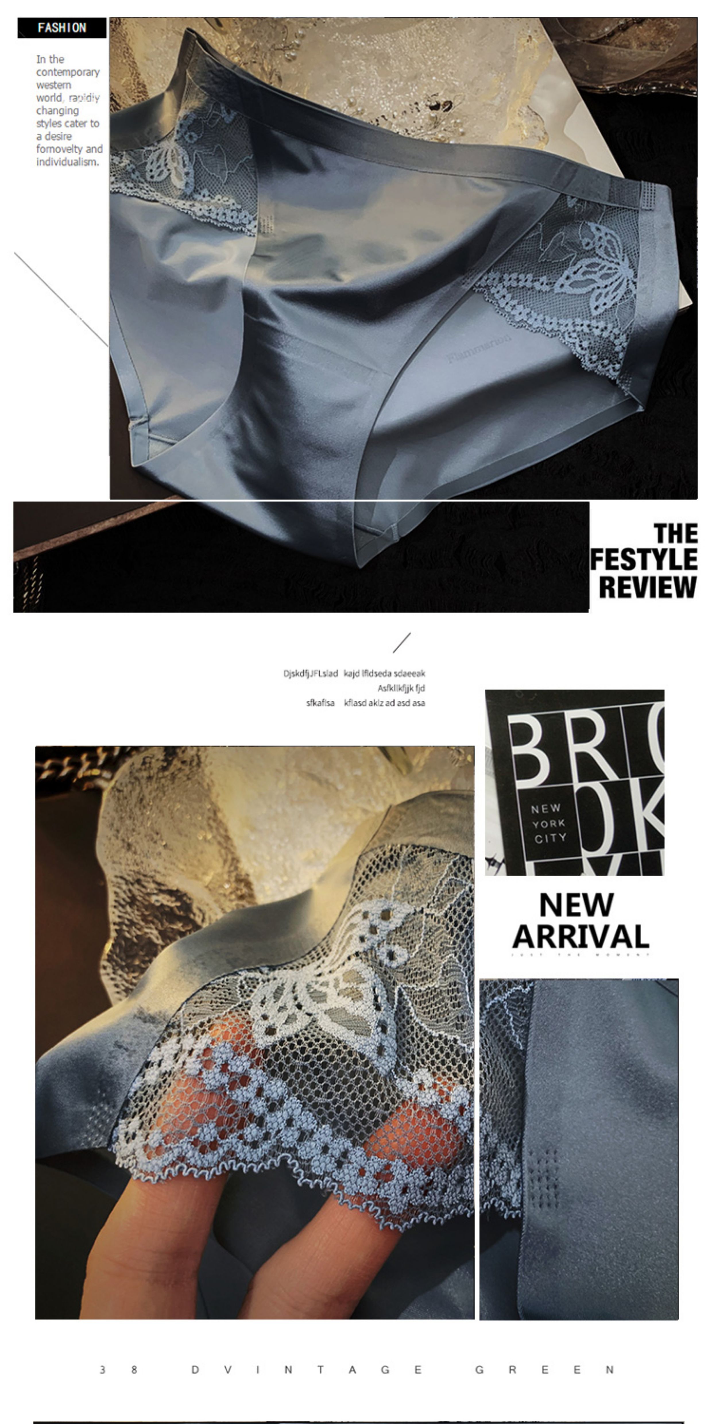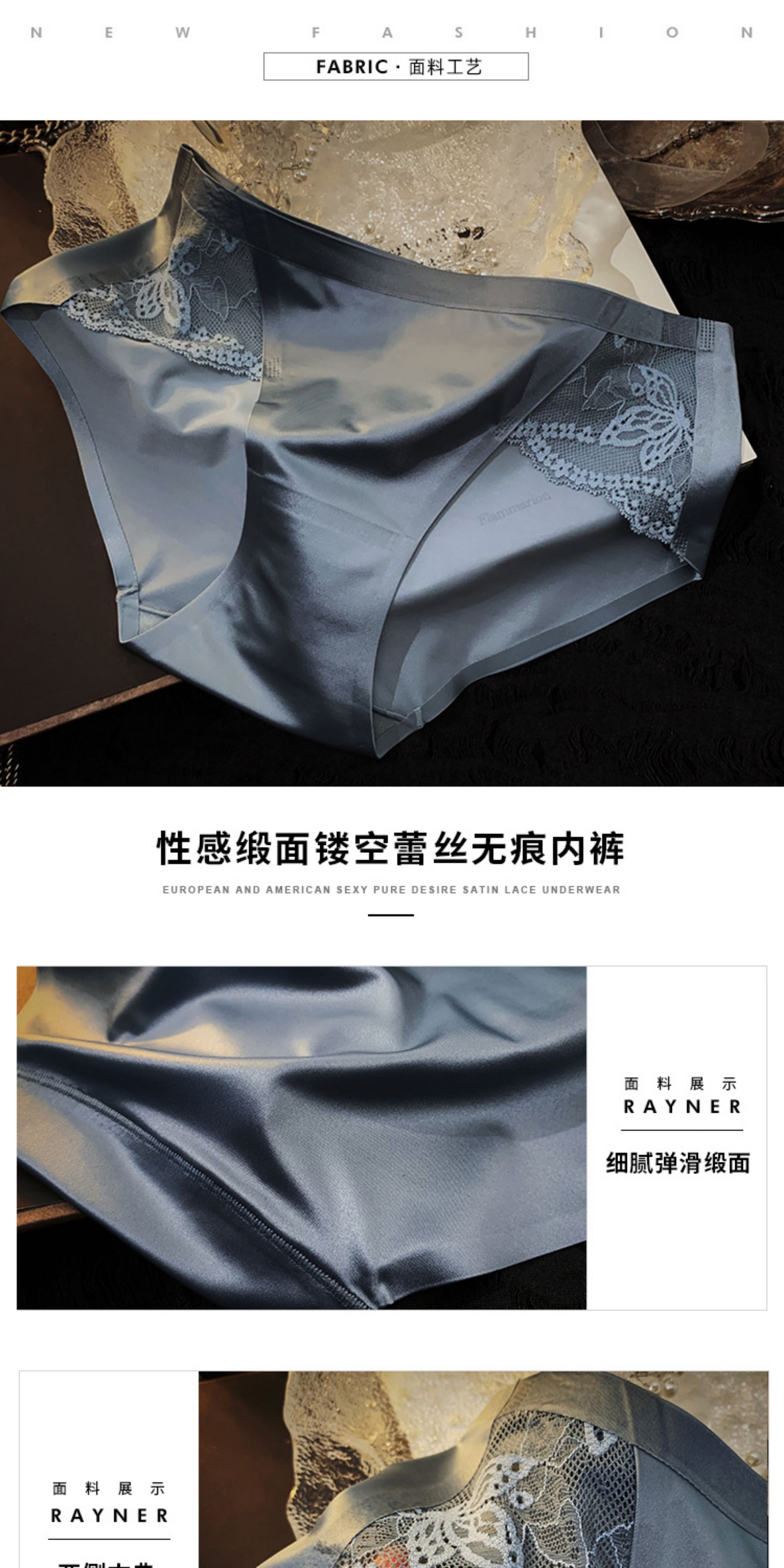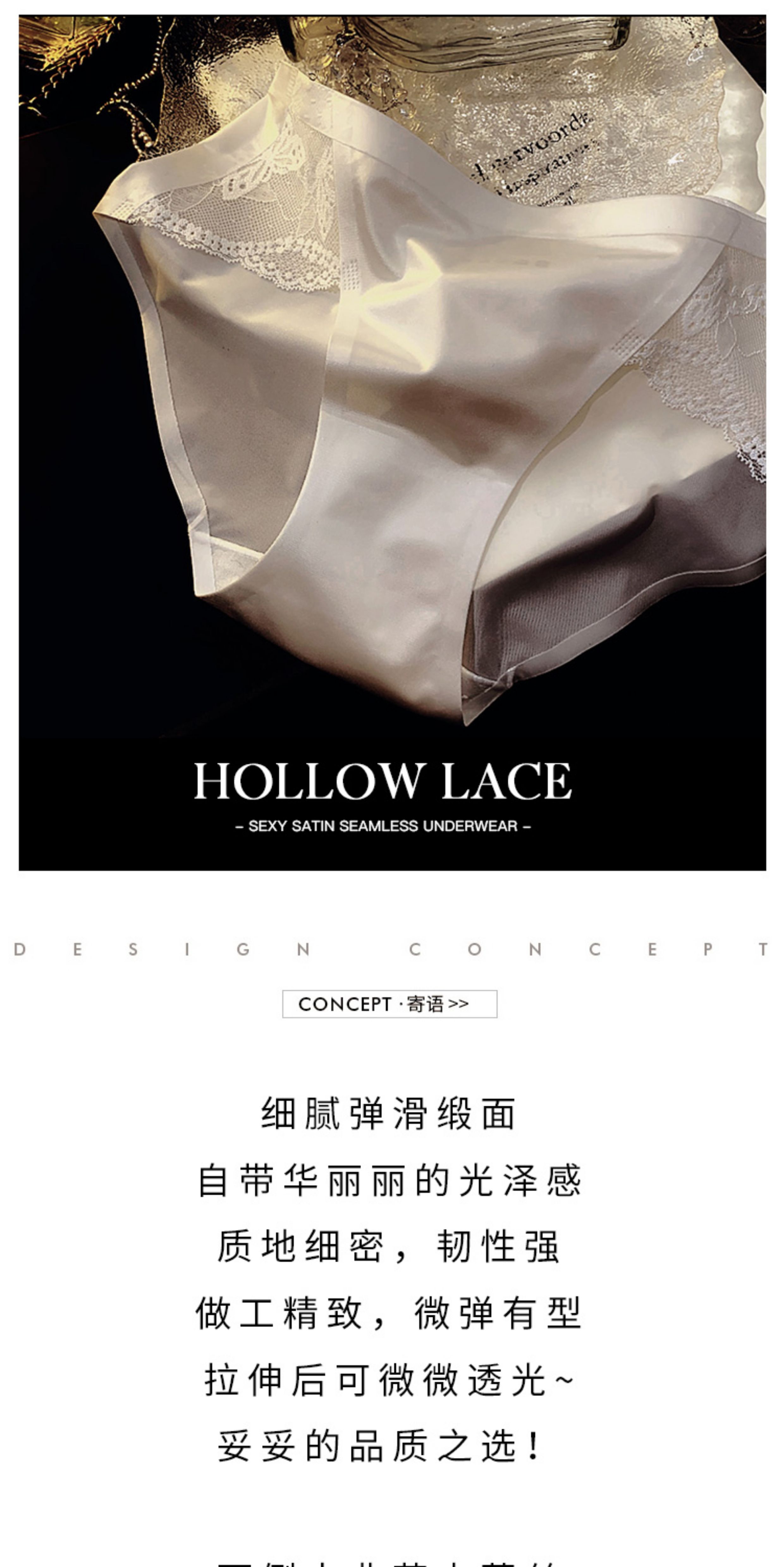 法式高級緞面蕾絲內褲女性感鏤空刺綉舒適透氣中腰包臀無痕三角褲