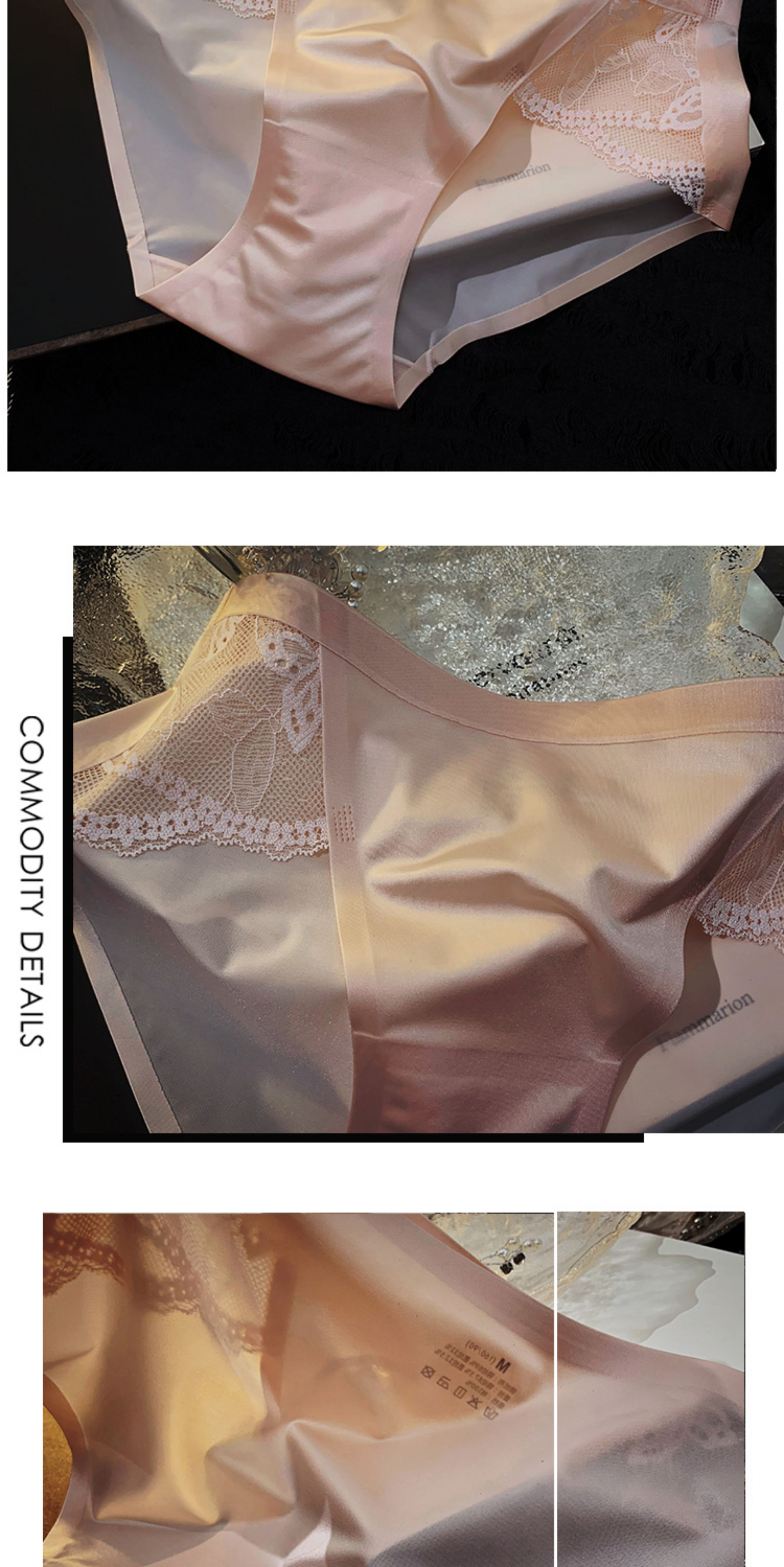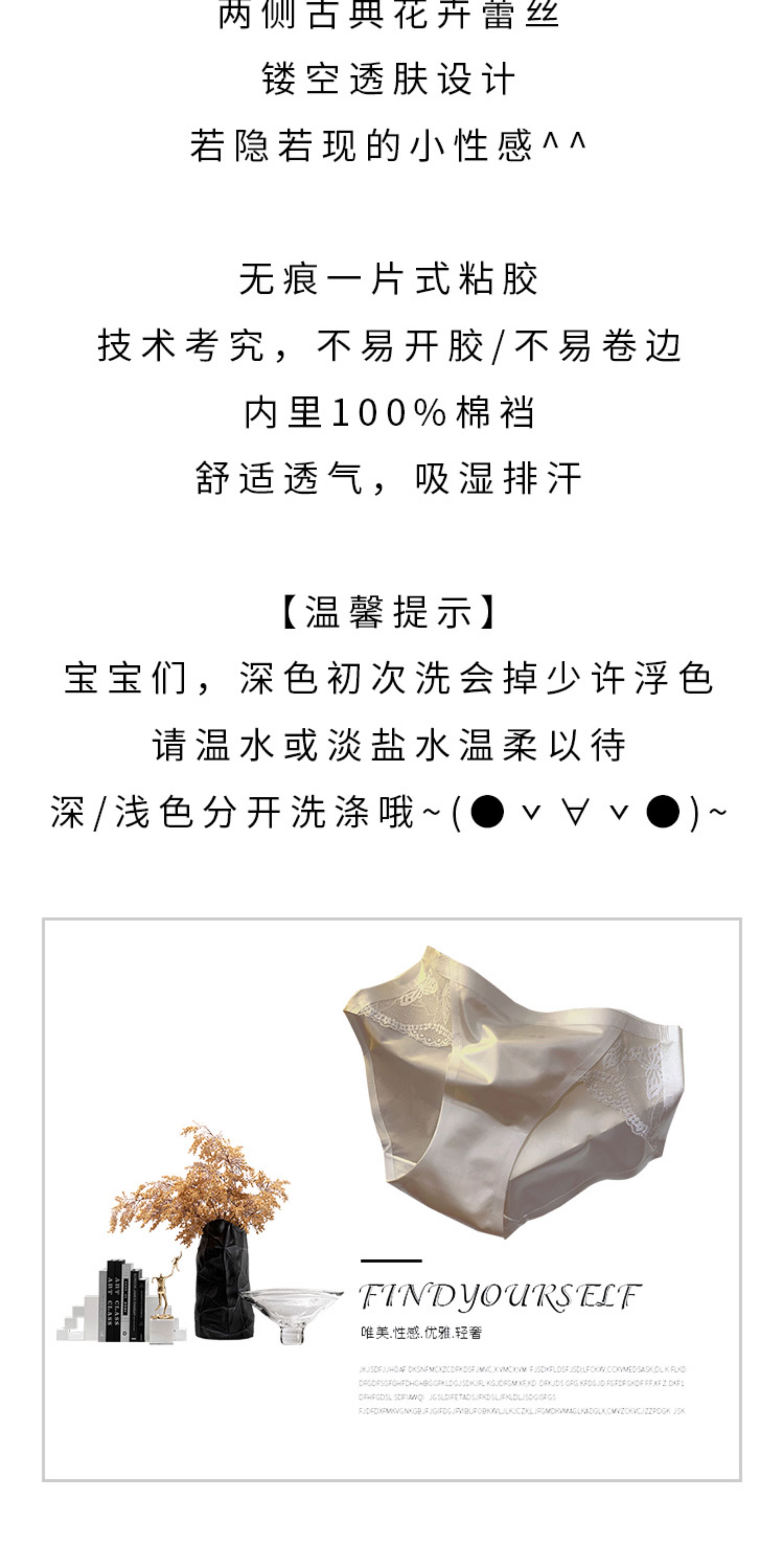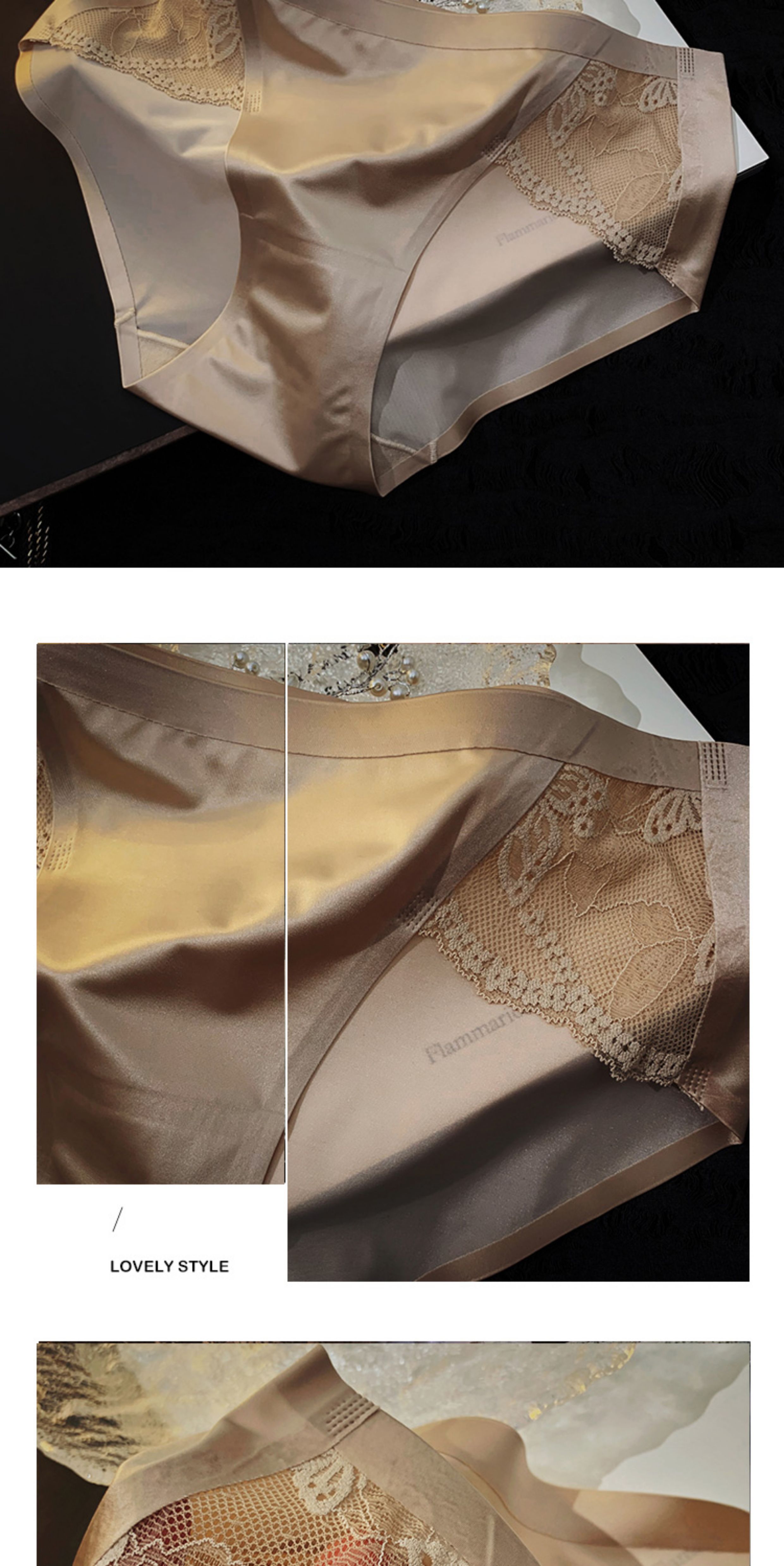 法式高級緞面蕾絲內褲女性感鏤空刺綉舒適透氣中腰包臀無痕三角褲