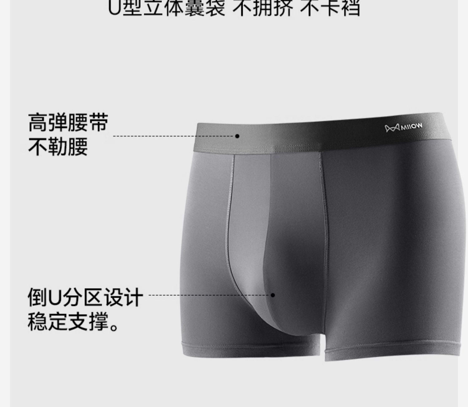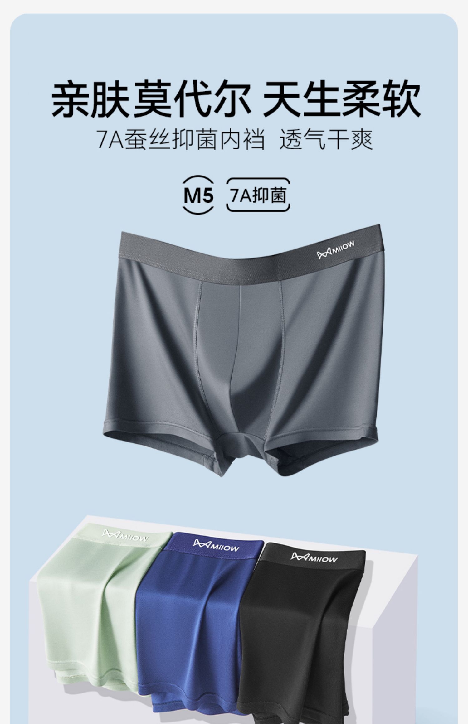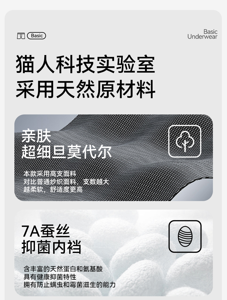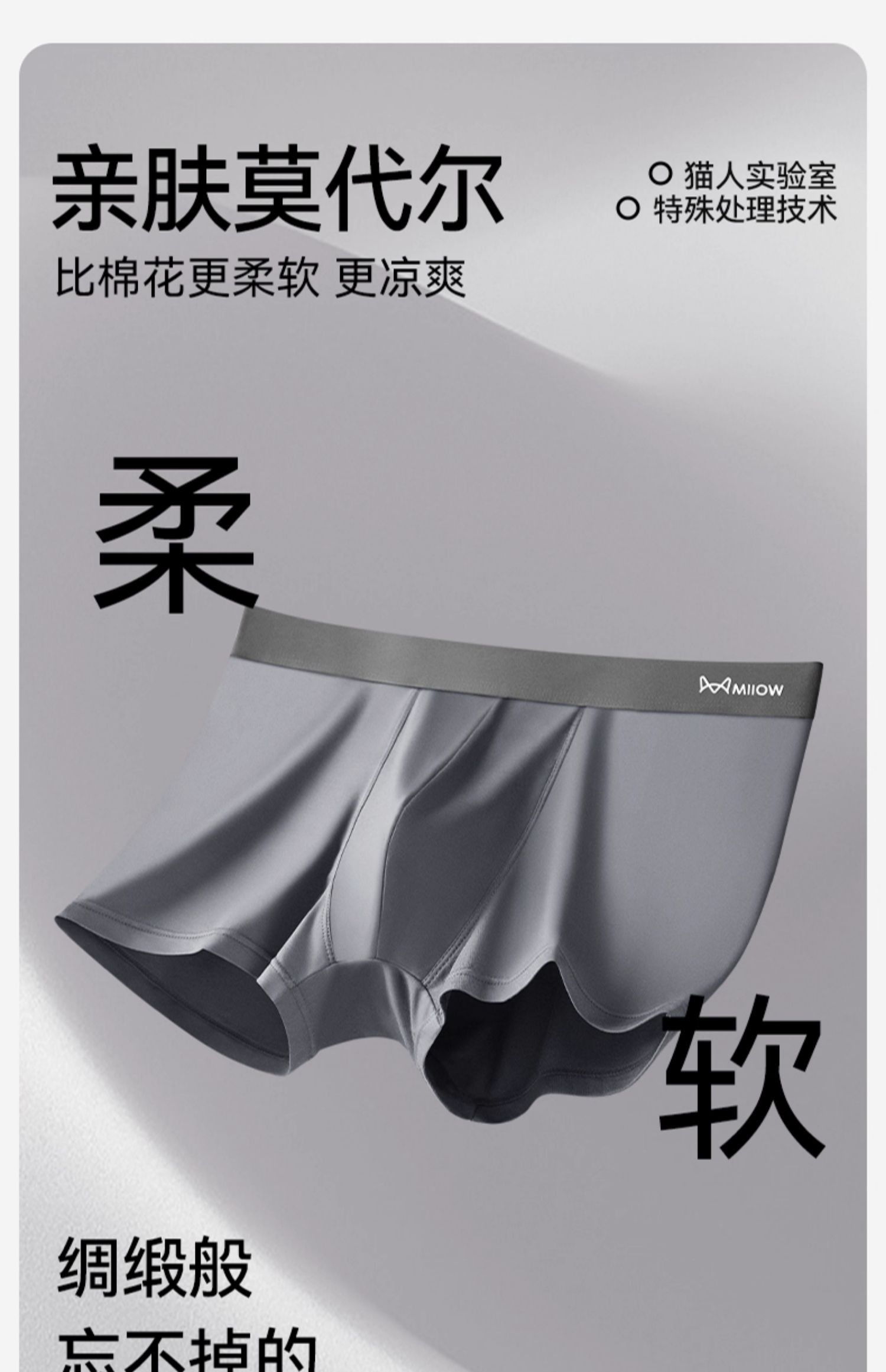 貓人莫代爾男士內褲2025新款平角褲夏季純棉無痕抗菌男四角短褲衩
