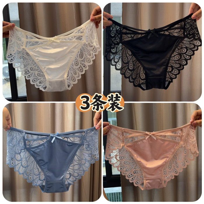 3條裝胖mm大碼200斤性感內褲 溫柔風鏤空無痕冰絲涼感抗菌三角褲