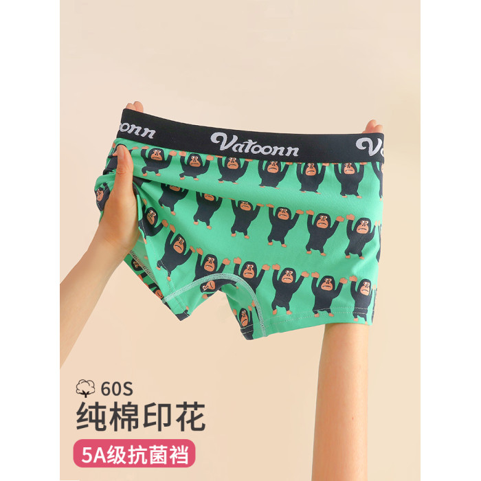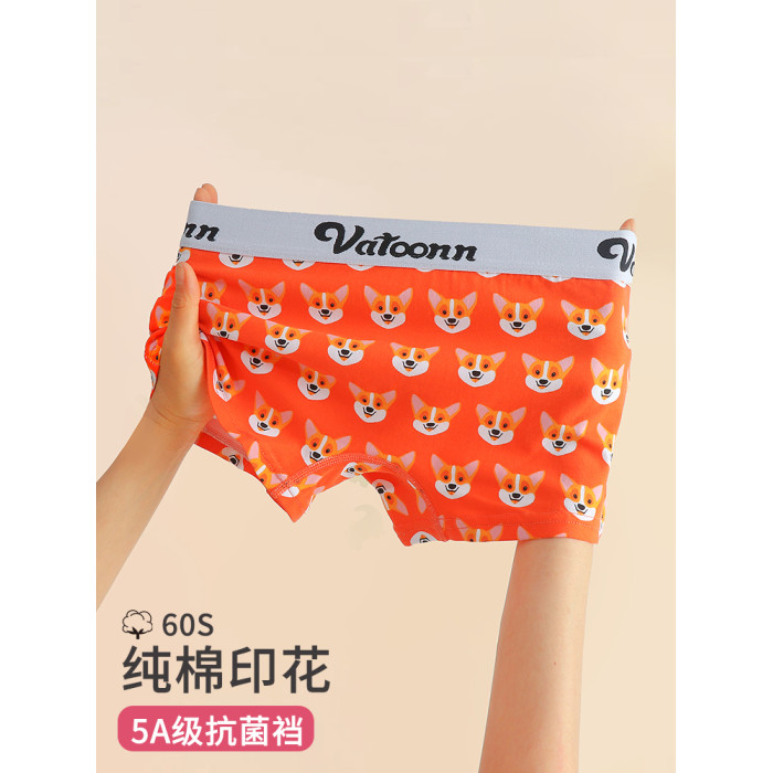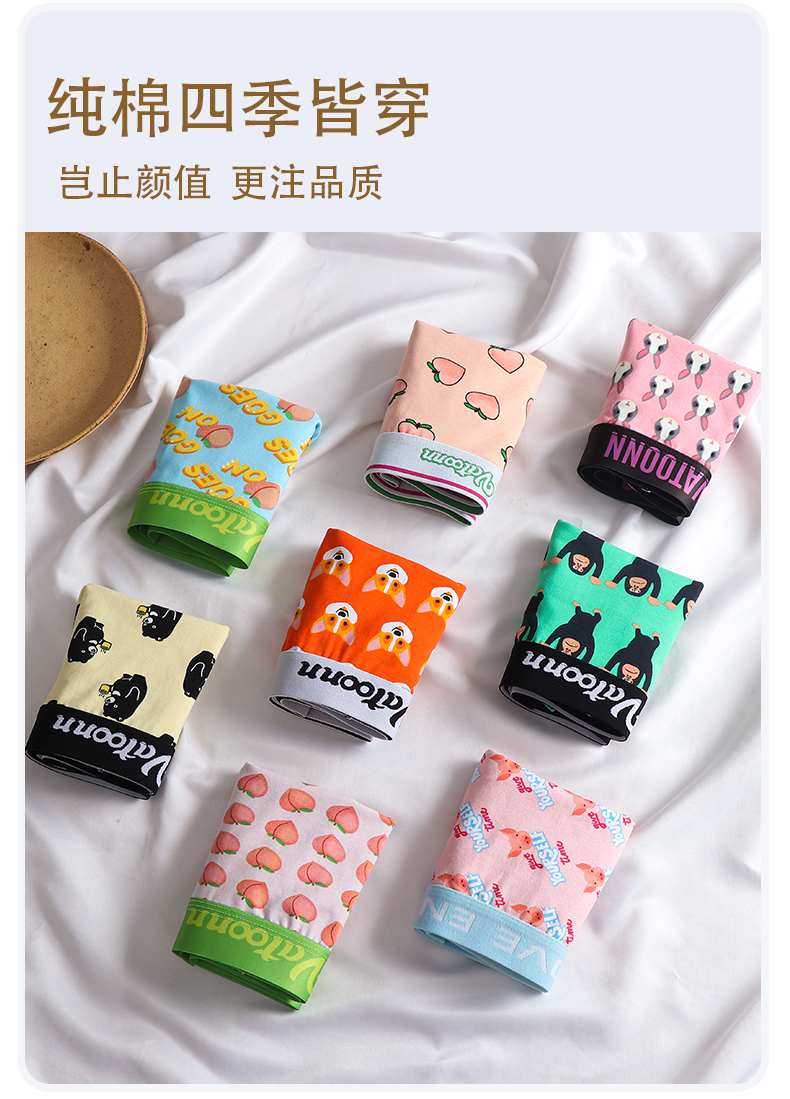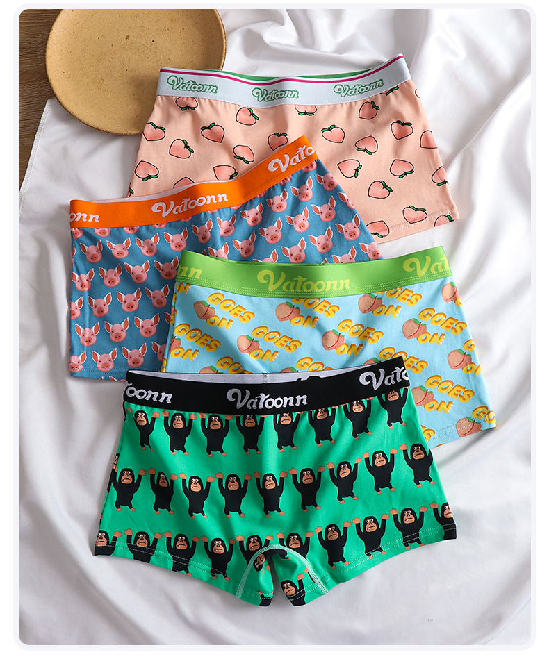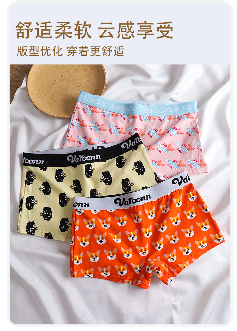 平角內褲女純棉四角內褲中性卡通印花中性運動舒適抗菌女生短褲