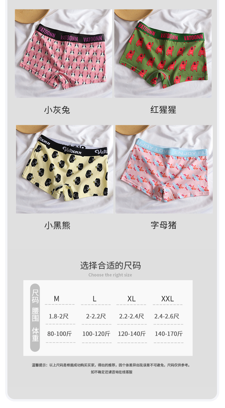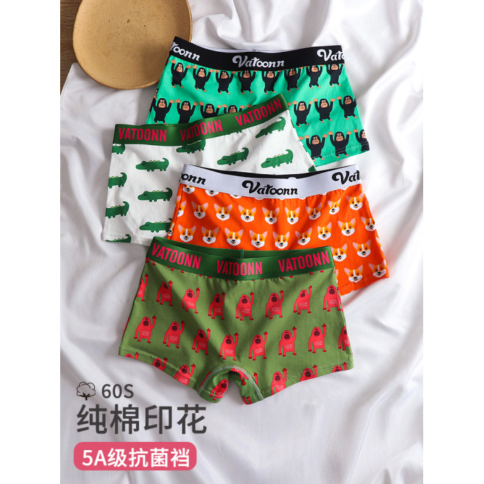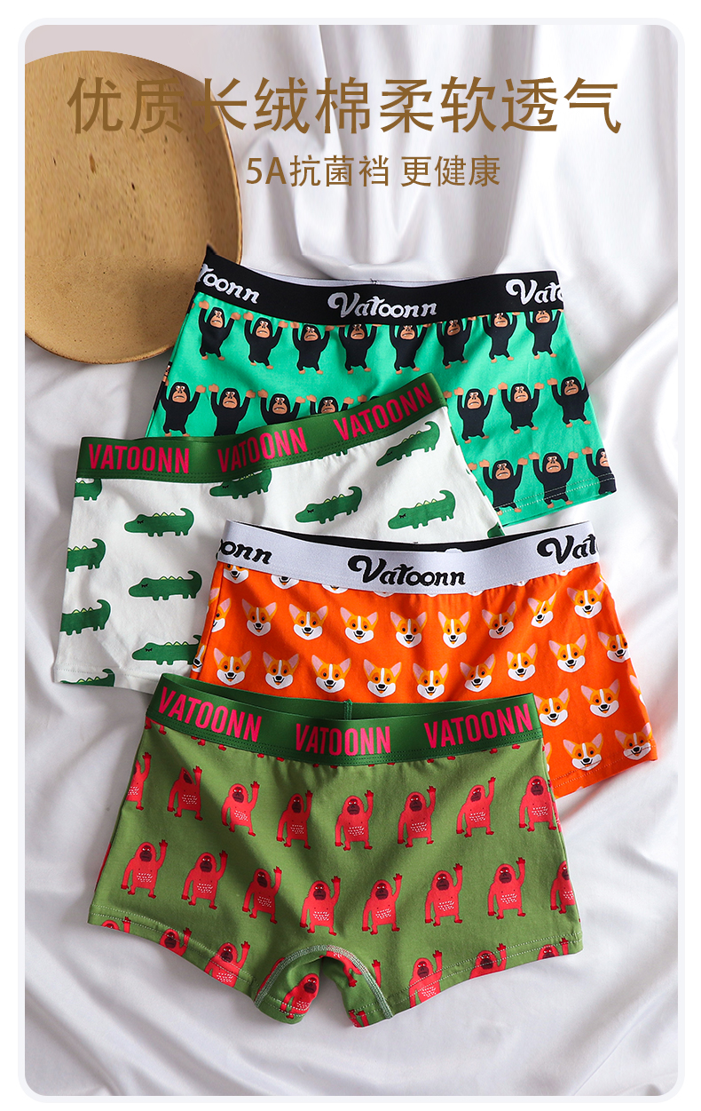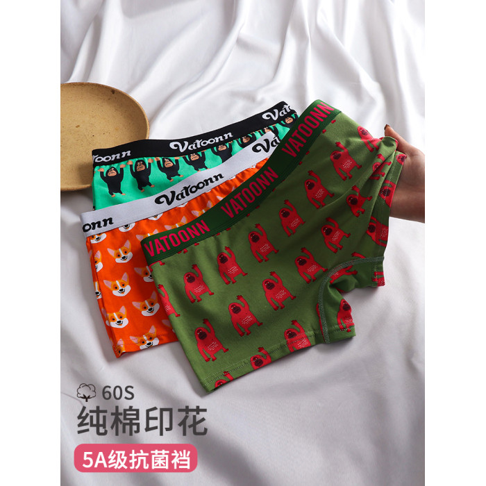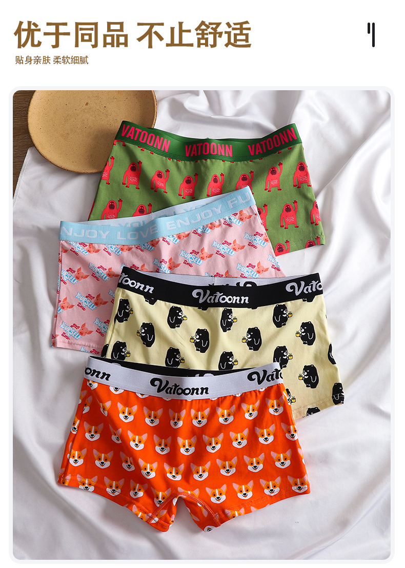 平角內褲女純棉四角內褲中性卡通印花中性運動舒適抗菌女生短褲
