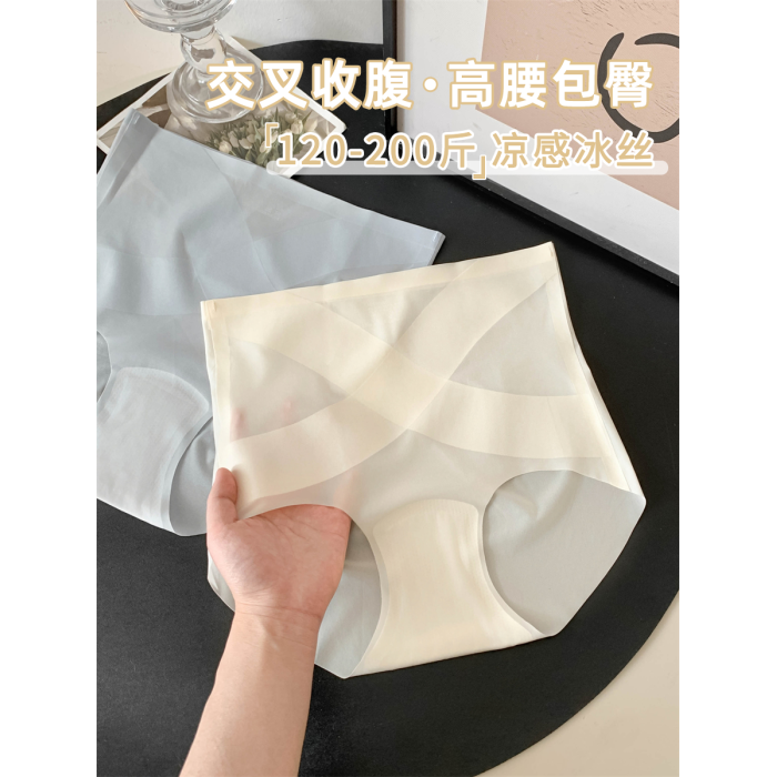 高腰大碼女士冰絲薄款胖MM收腹提臀內褲女無痕收小肚子女生三角褲