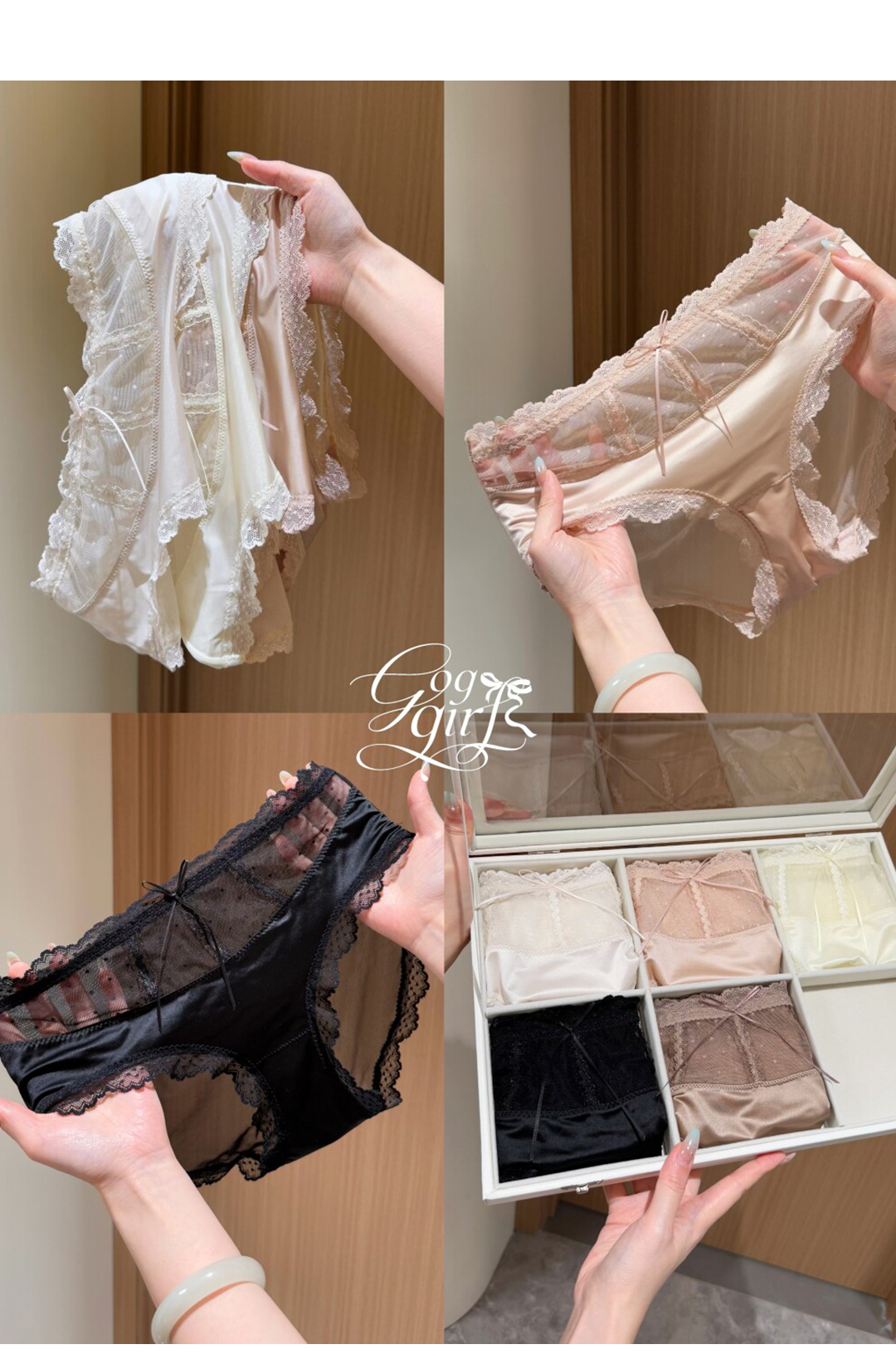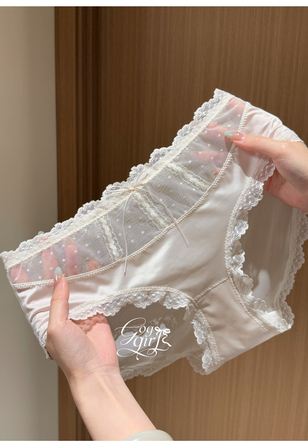 法式老錢透氣蕾絲三角褲新款親膚網紗女士內褲中高腰包臀純棉襠薄