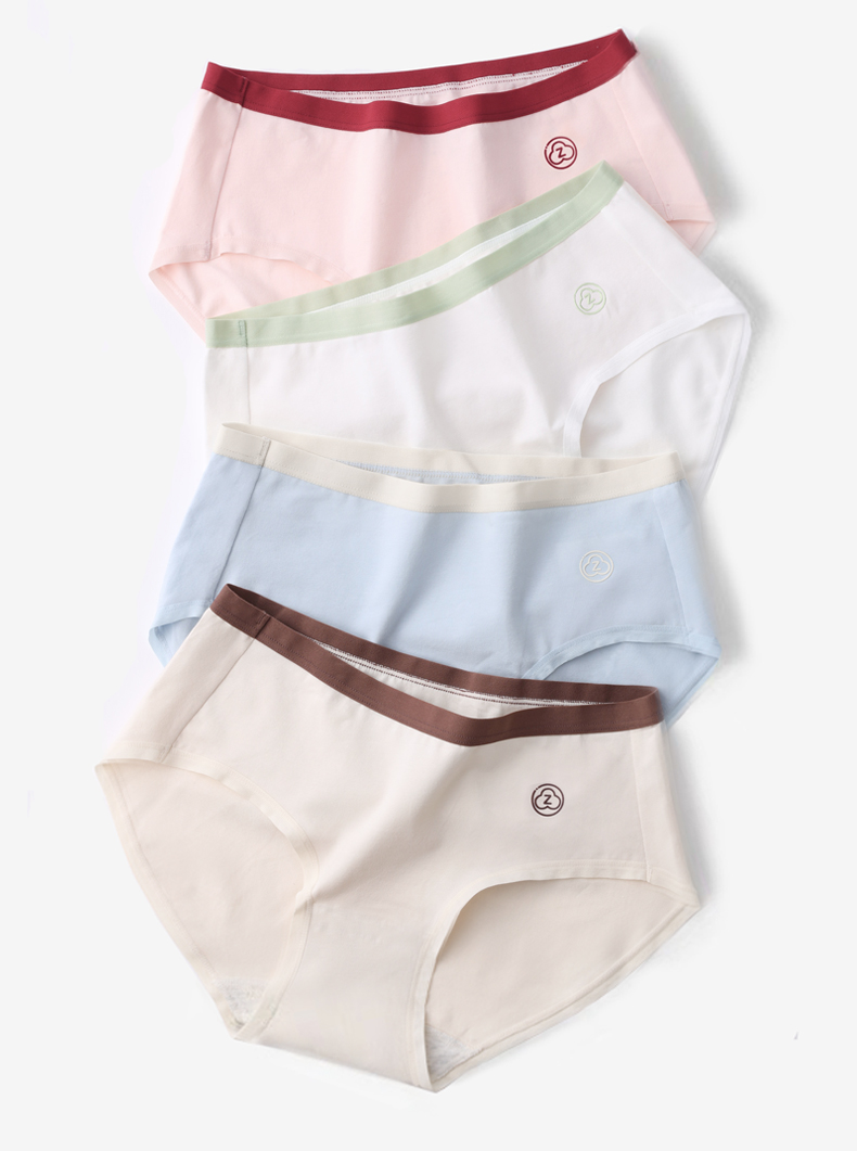 女士內褲純棉女抗菌100%全棉襠無痕女生少女中腰春夏短褲頭禮盒裝