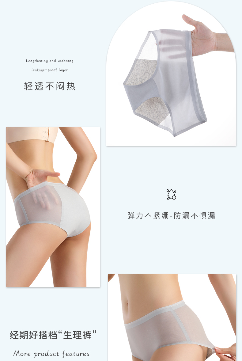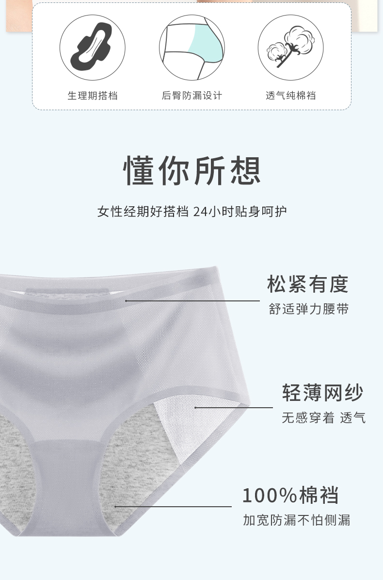 夏季薄款生理期女士內褲無痕純棉抑菌襠月經期加寬防漏三角生理褲