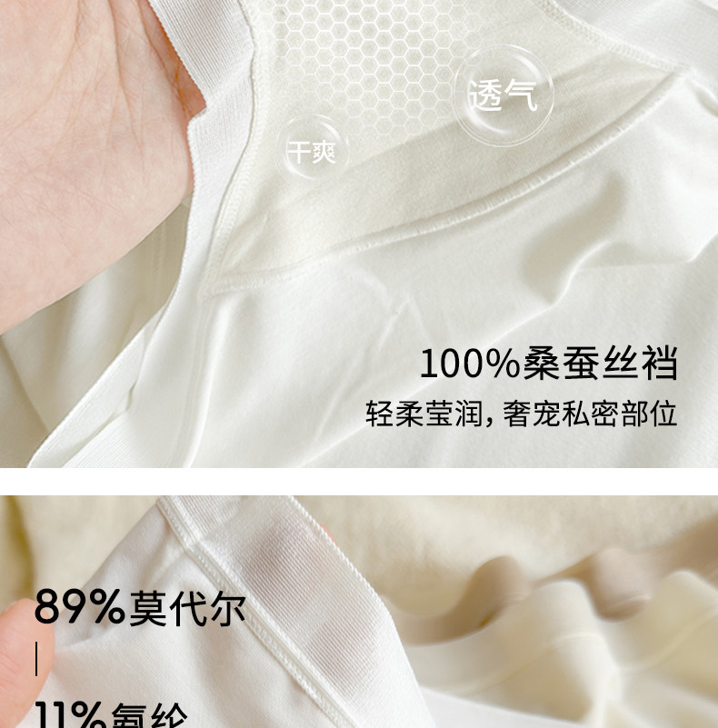 莫代爾內褲女生100%桑蠶絲襠抗菌女士短褲無痕包臀2025新款三角褲
