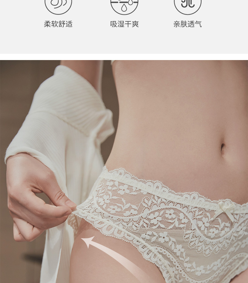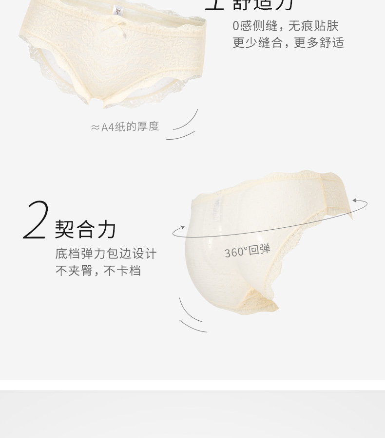 【三條裝】內褲女士蕾絲邊純棉全棉襠簡約無痕夏季薄款中腰三角褲