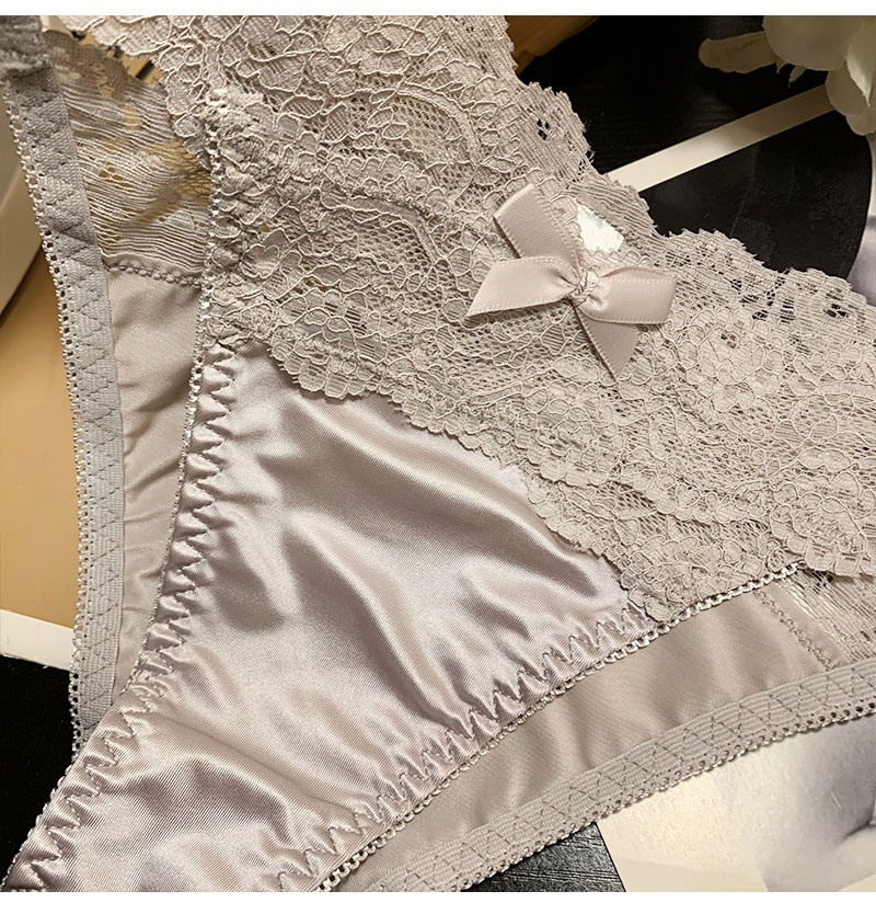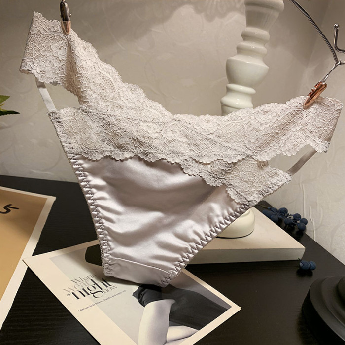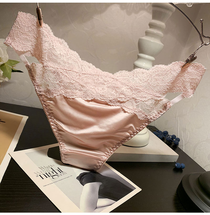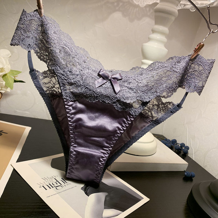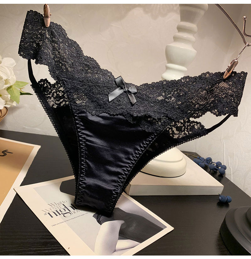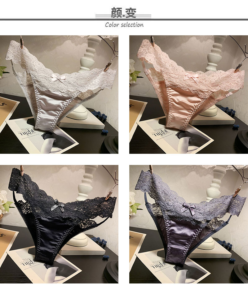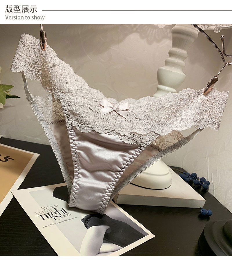 無痕內褲女士低腰性感蕾絲拼接冰絲時尚丁字褲T褲少女學生三角褲