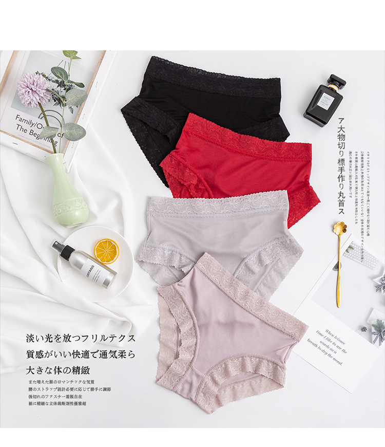 真絲內褲女透氣舒適天然桑蠶絲蕾絲包臀性感大碼無痕平角內褲加大