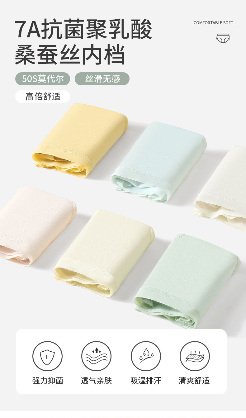 caramella女士內褲2025新款爆款莫代爾桑蠶絲抗菌純色短褲三角褲