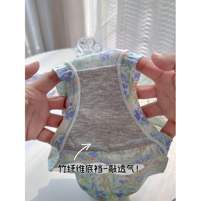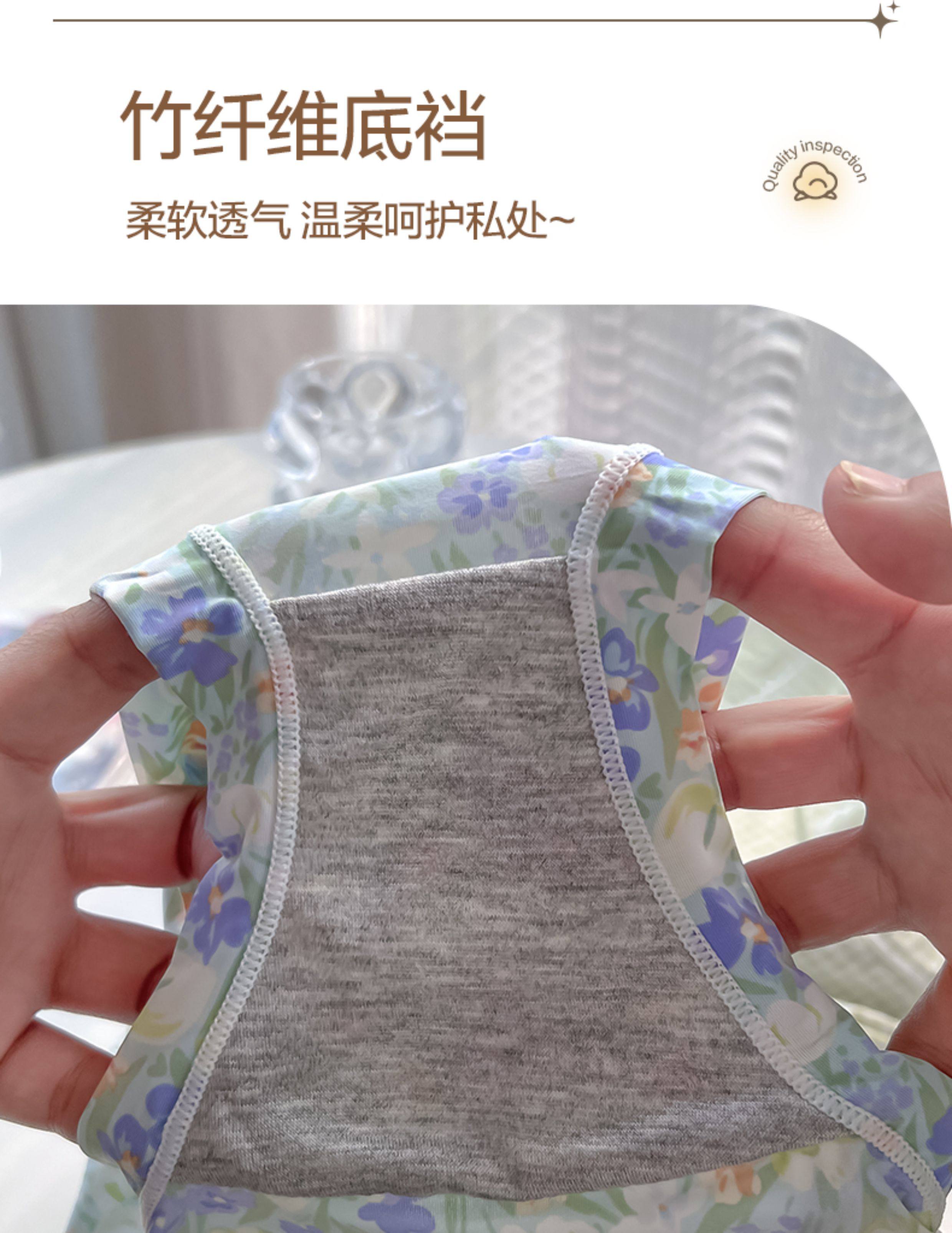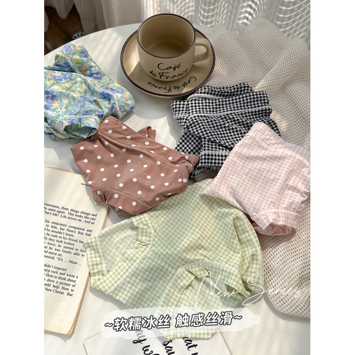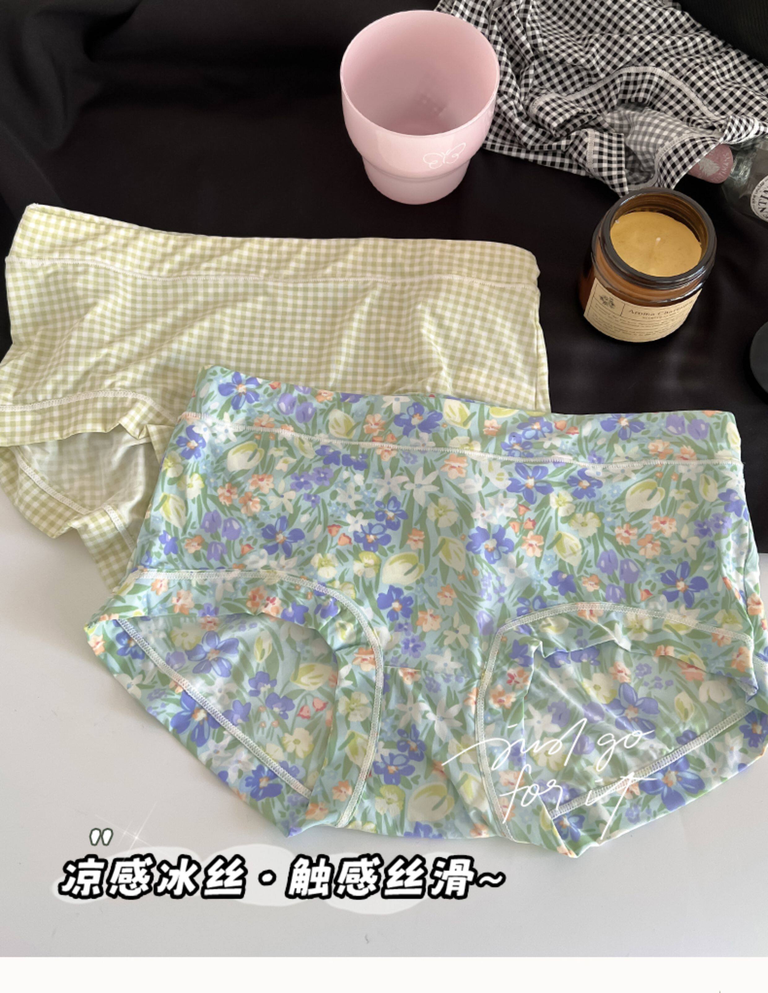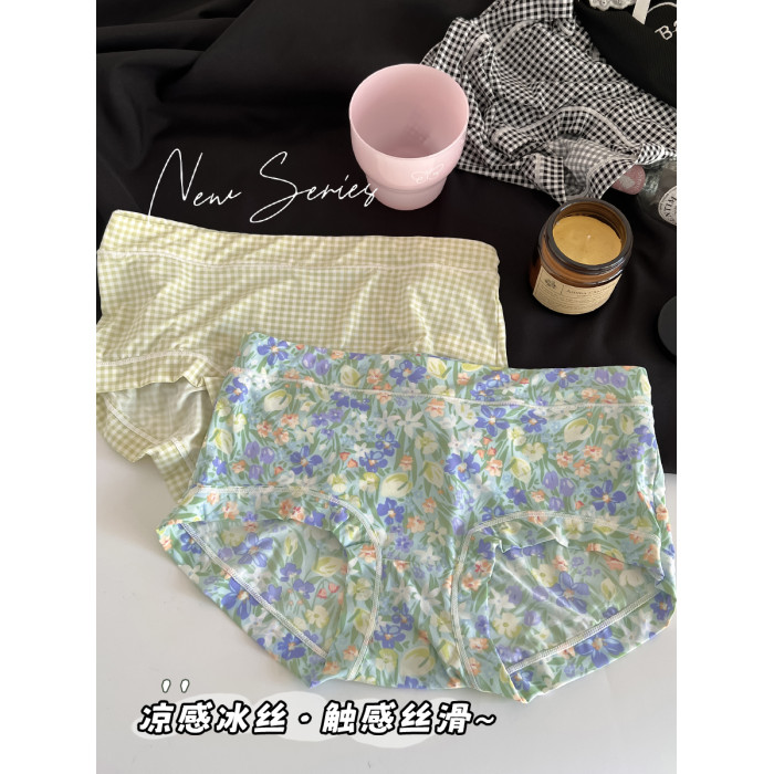 內褲女冰絲日系少女中低腰無痕速乾綠色柔軟透氣2024新款性感三角