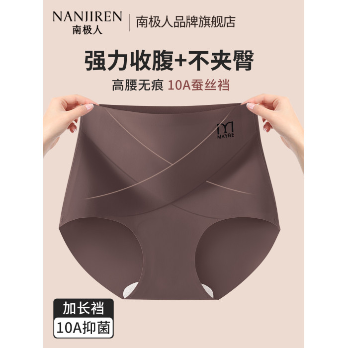 南極人高腰內褲女款無痕冰絲收腹7a級蠶絲抗菌襠透氣女士三角短褲