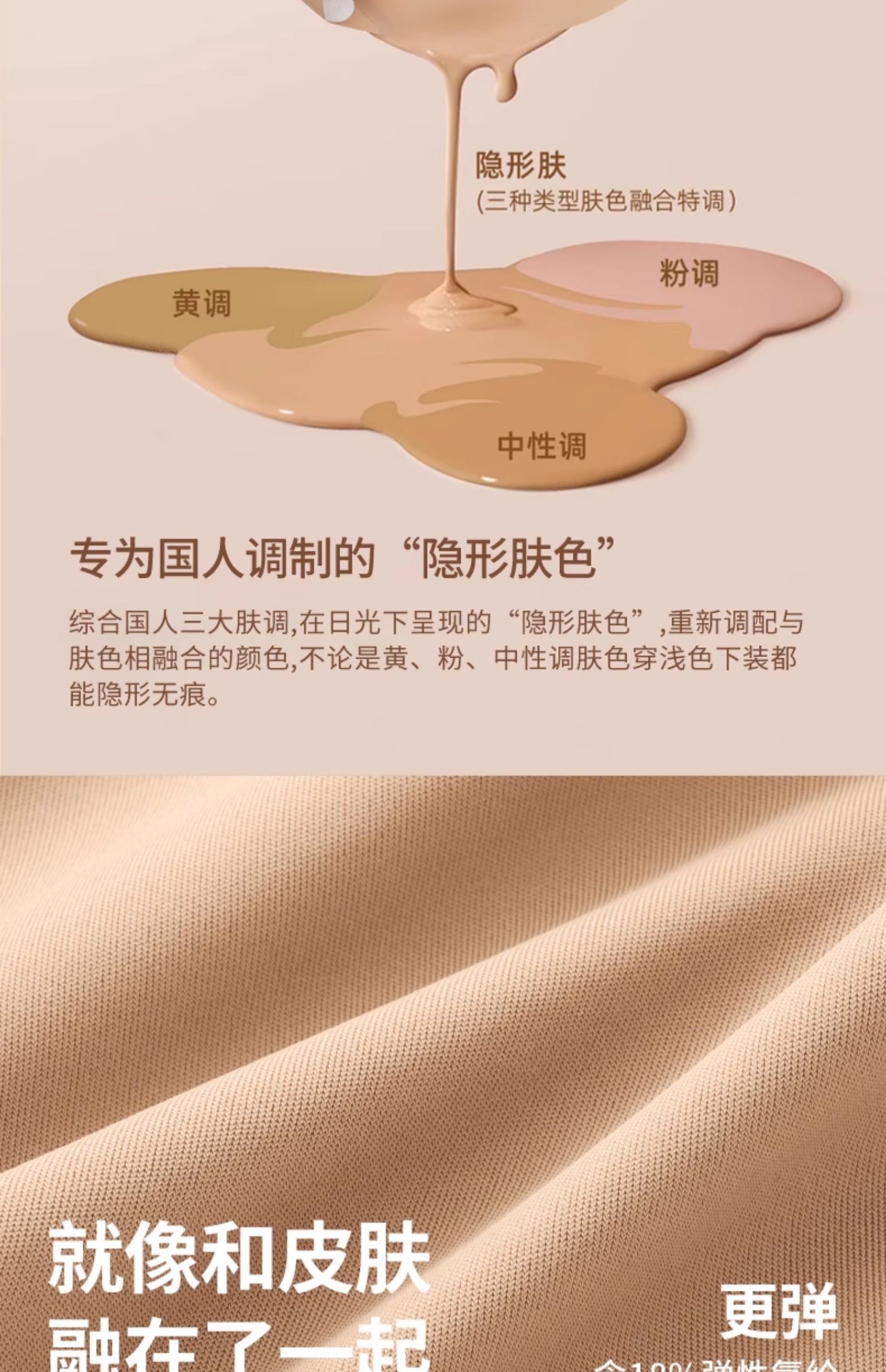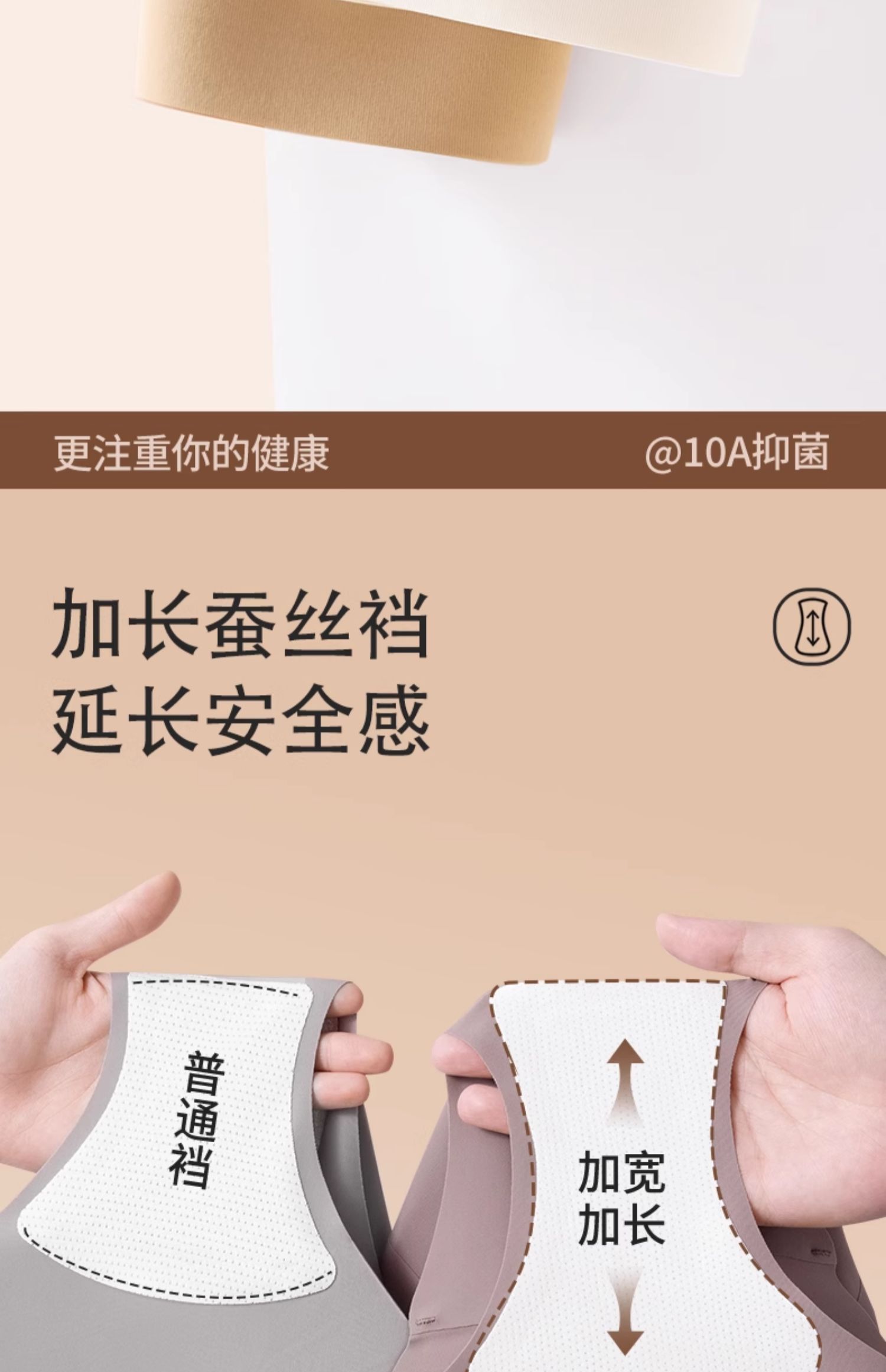 | 襠部材質成分 | 粘膠纖維(粘纖)89.6% 桑蠶絲3.9% 聚氨酯彈性纖維(氨綸)3.8% 聚醯胺纖維(錦綸)2.7% |