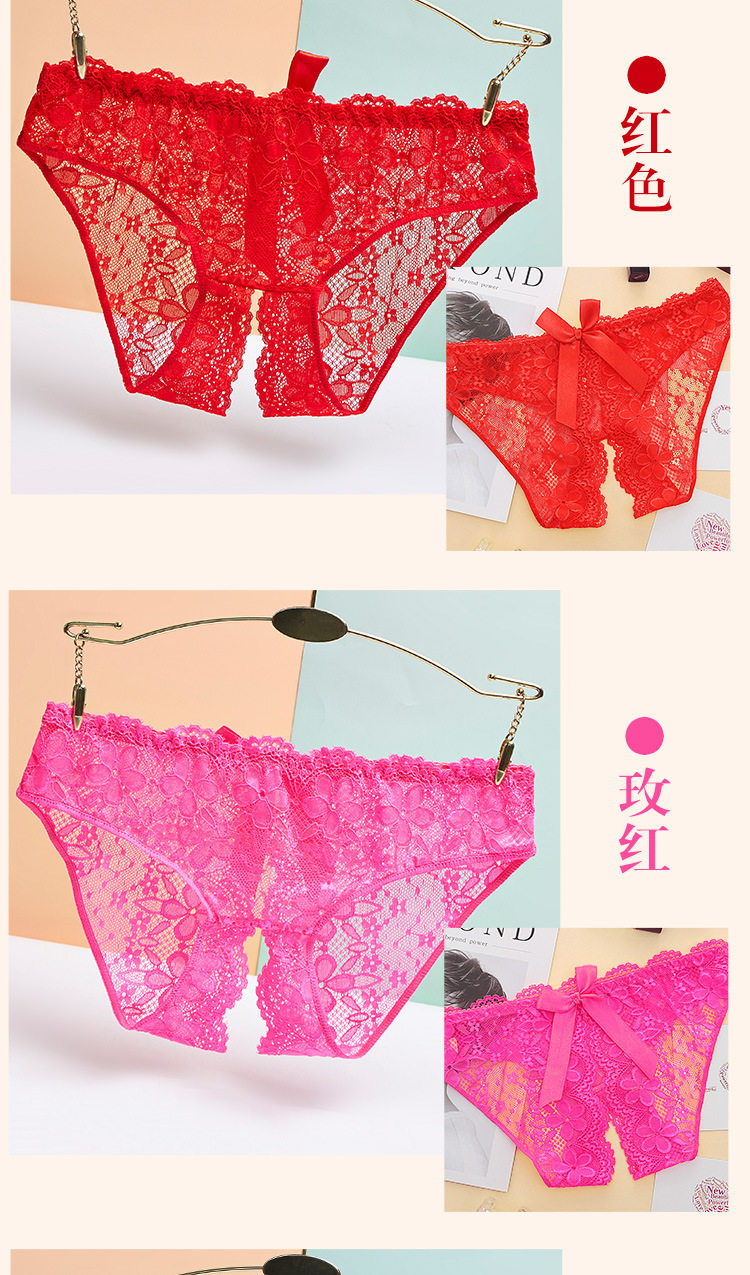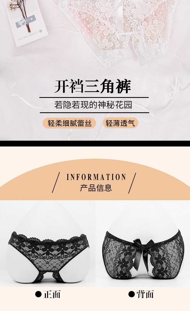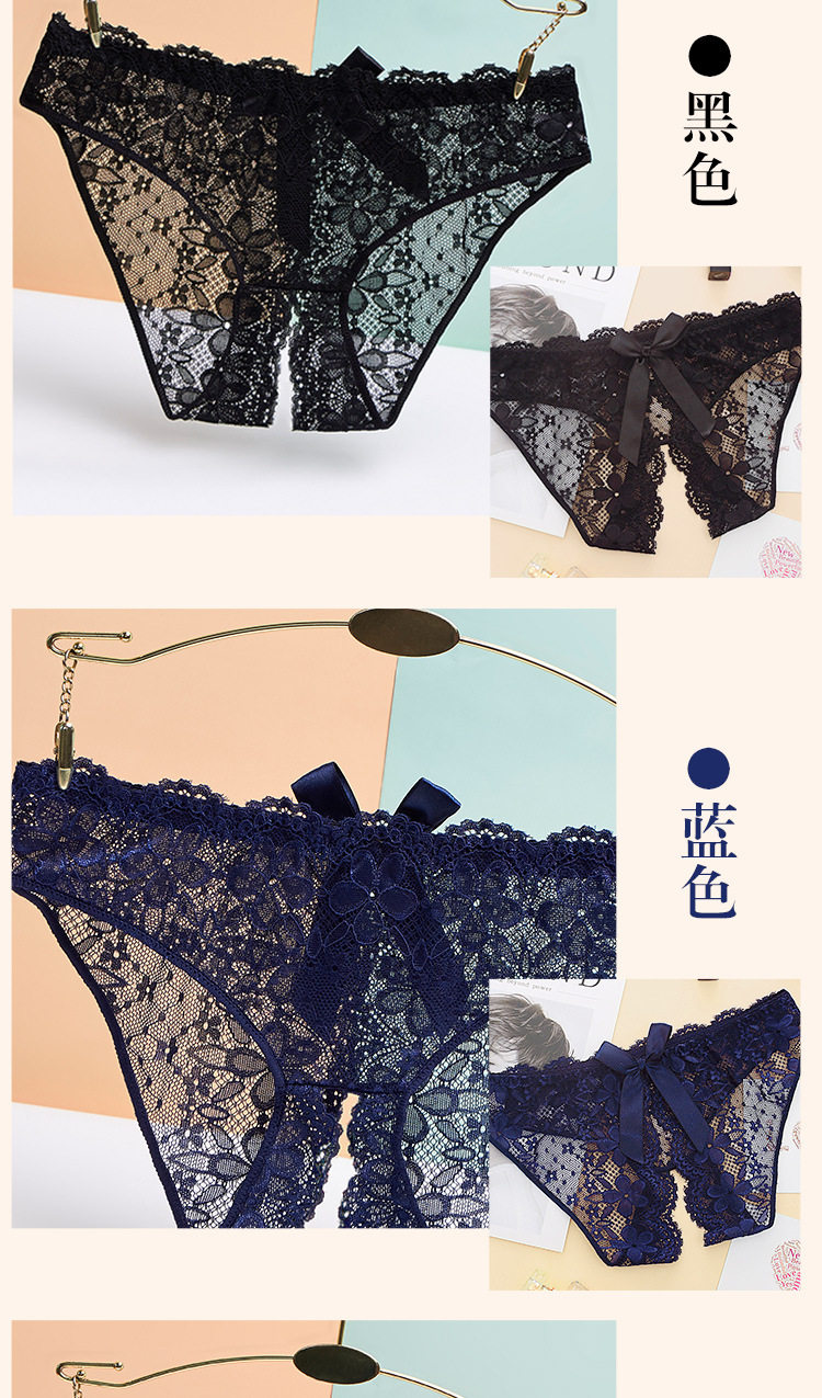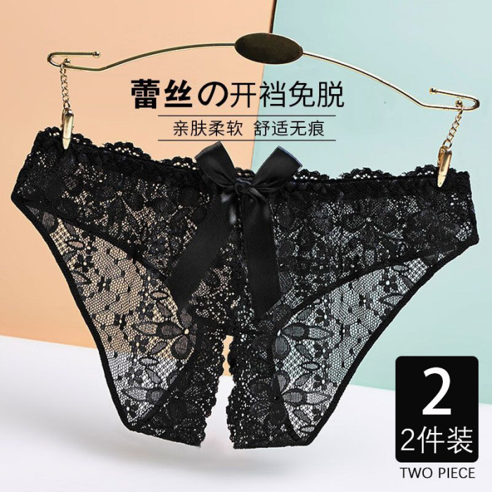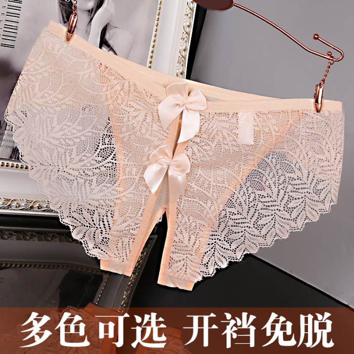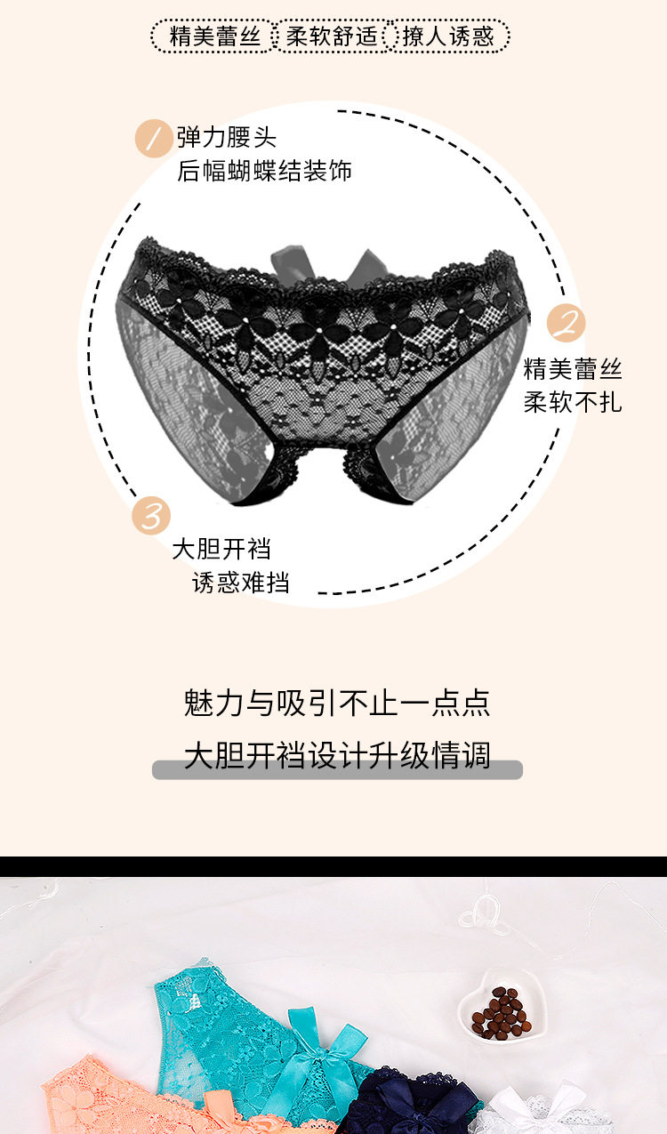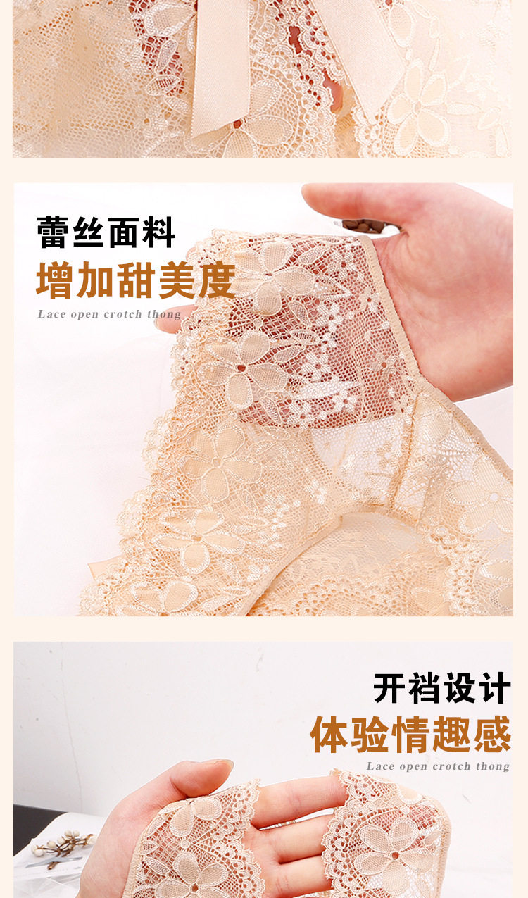 免穿脫女蕾絲內褲無痕少女全透明誘惑純欲火辣大碼情調開檔三角褲