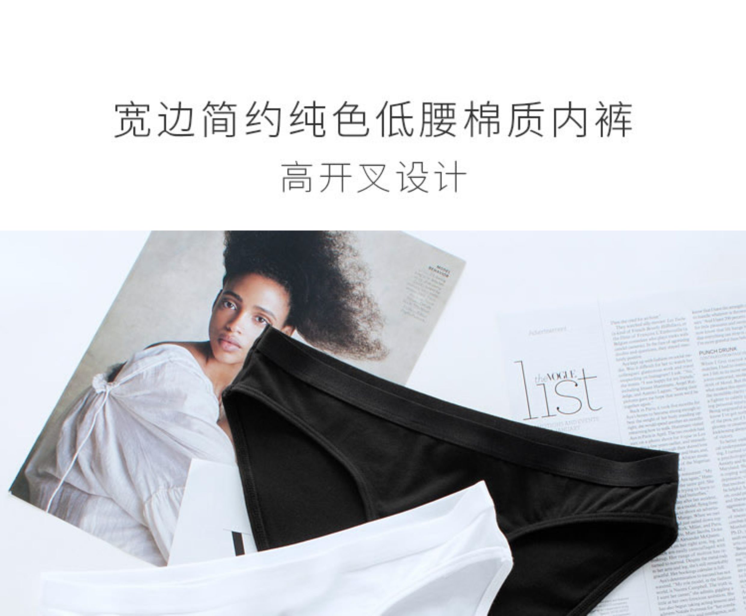 簡約內褲女純棉性感高開叉舒適純色寬邊少女士低腰三角褲黑色白色
