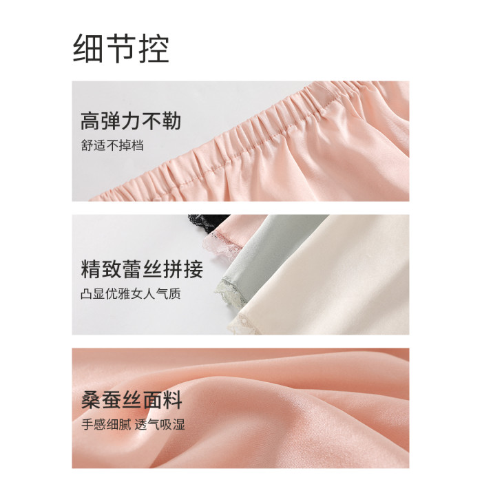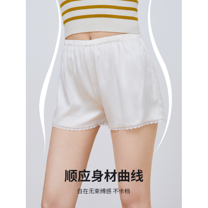 青山家 真絲打底褲女桑蠶絲不卷邊四角蕾絲內褲防走光短褲安全褲