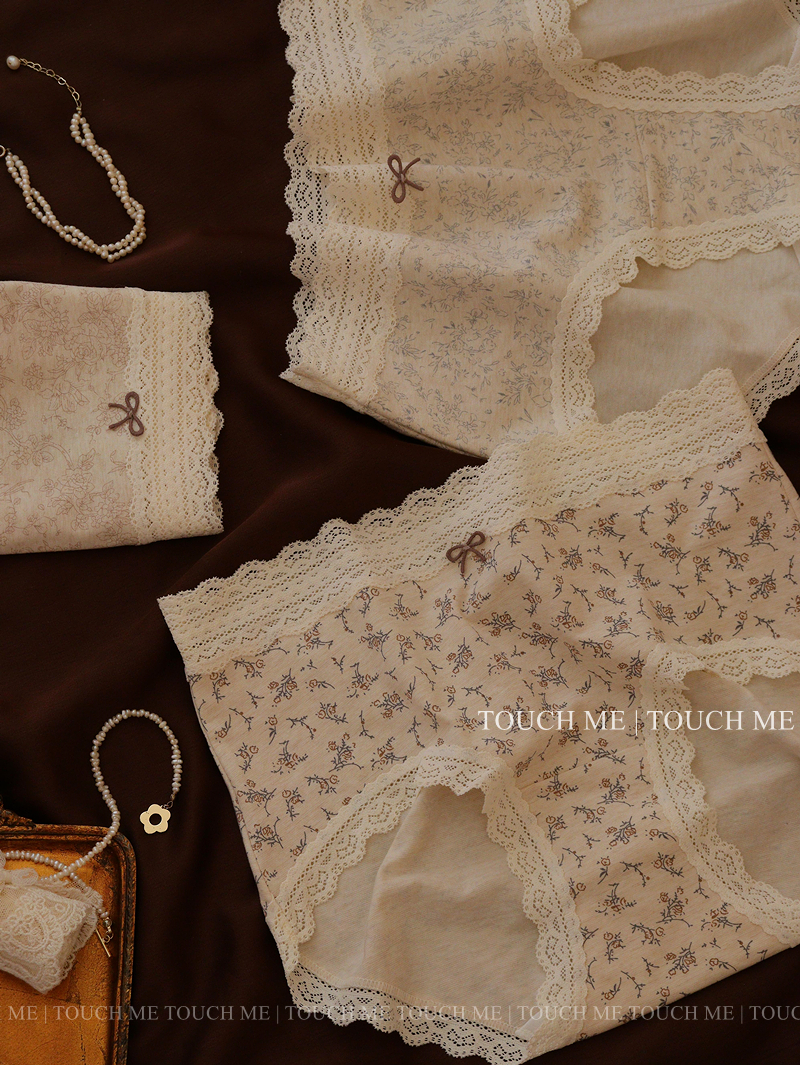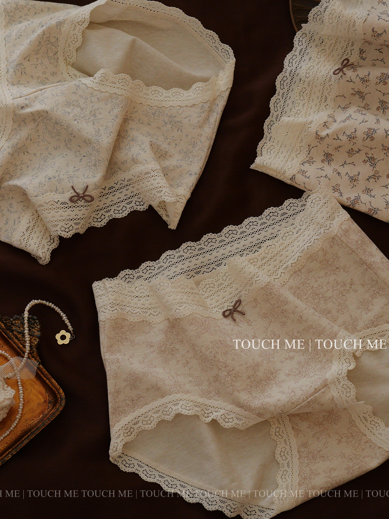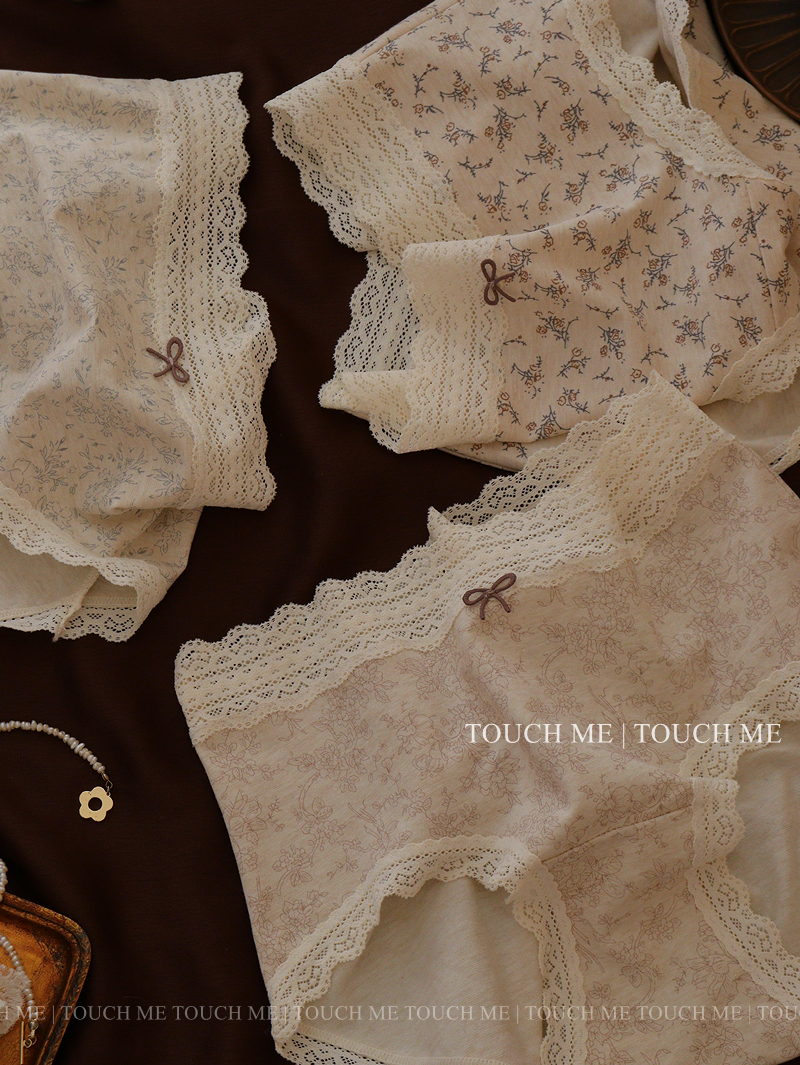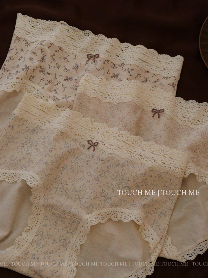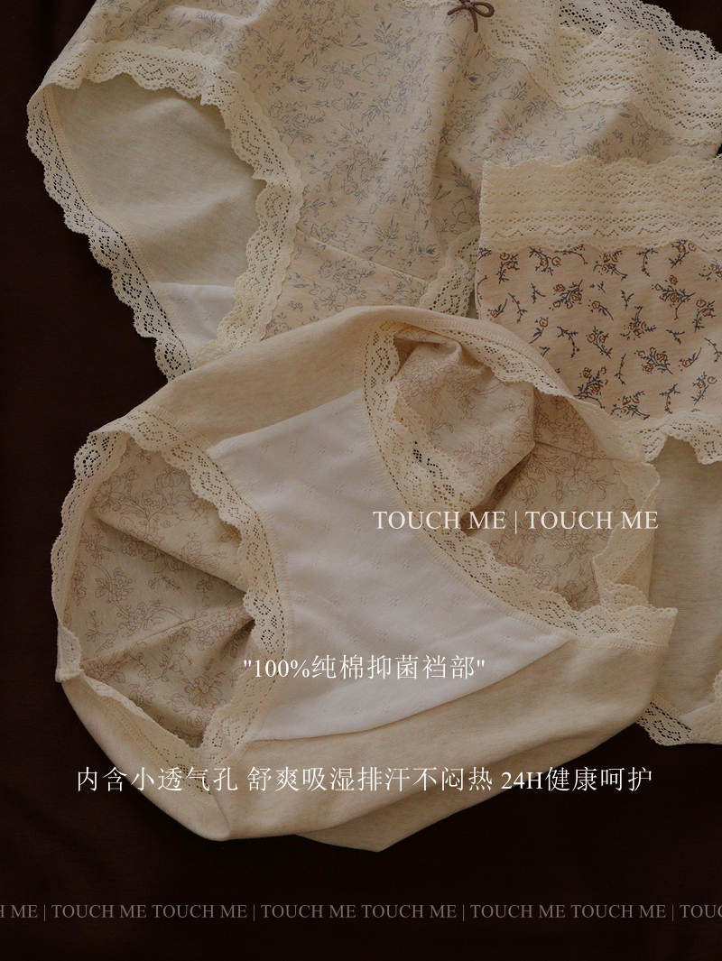 touchme中式復古繁花蕾絲邊純棉內褲女透氣薄款舒適抑菌襠中腰3條