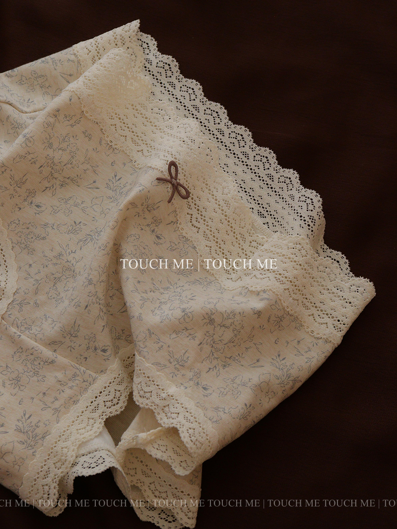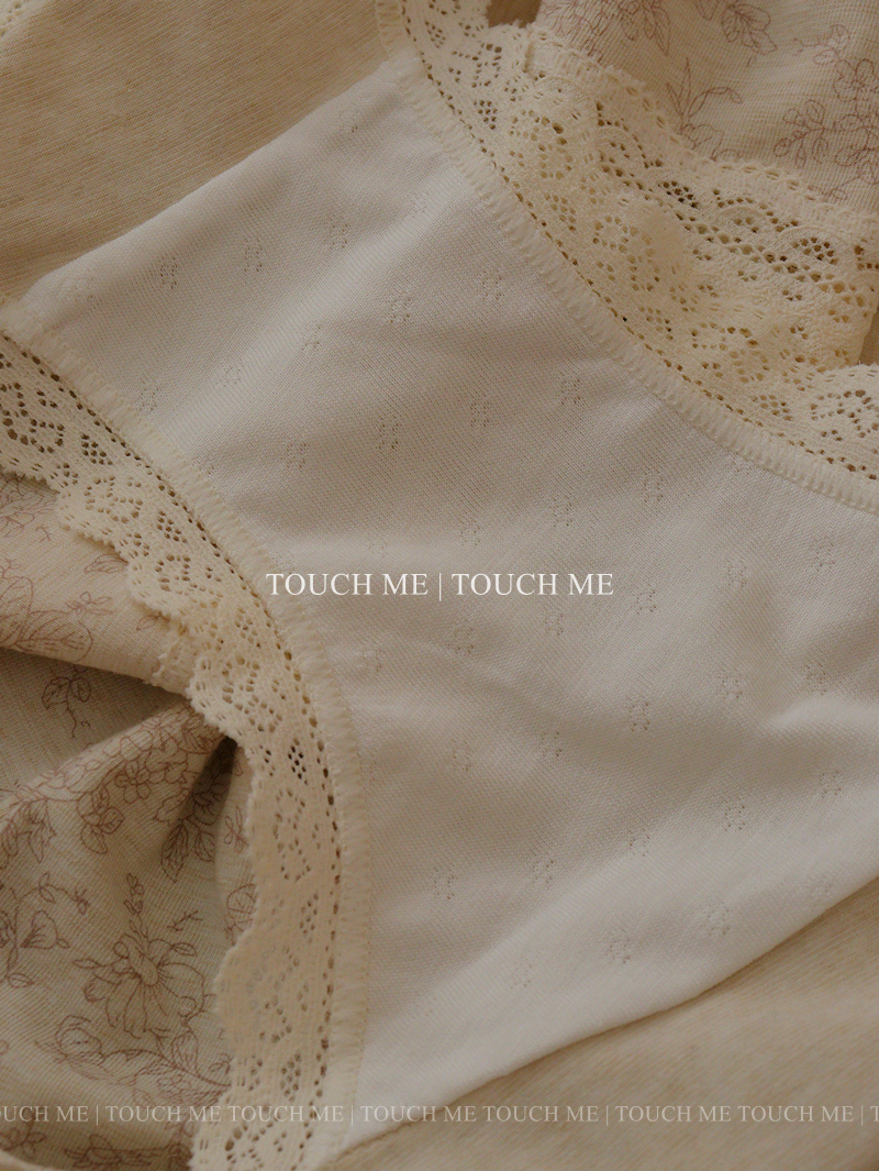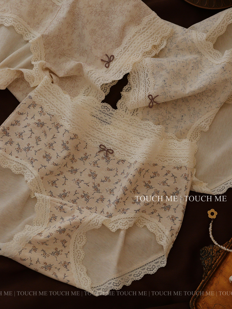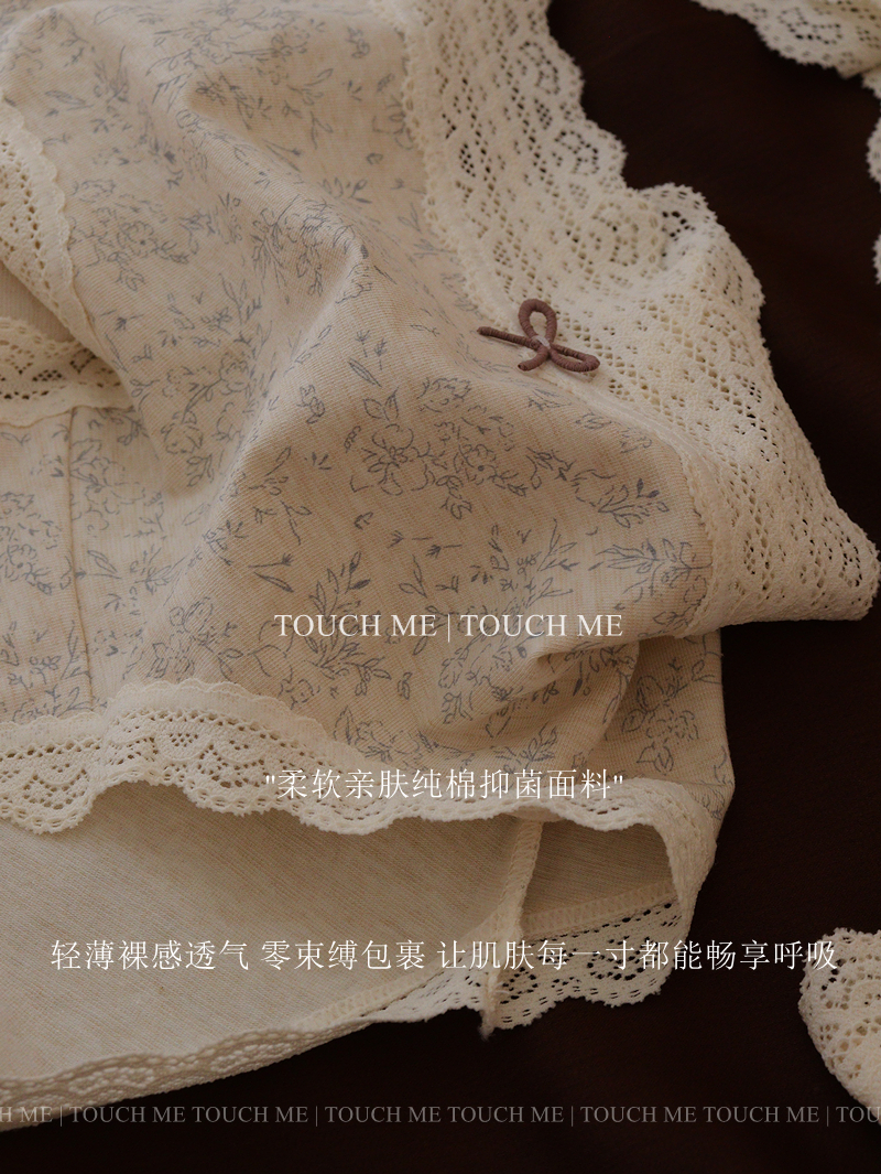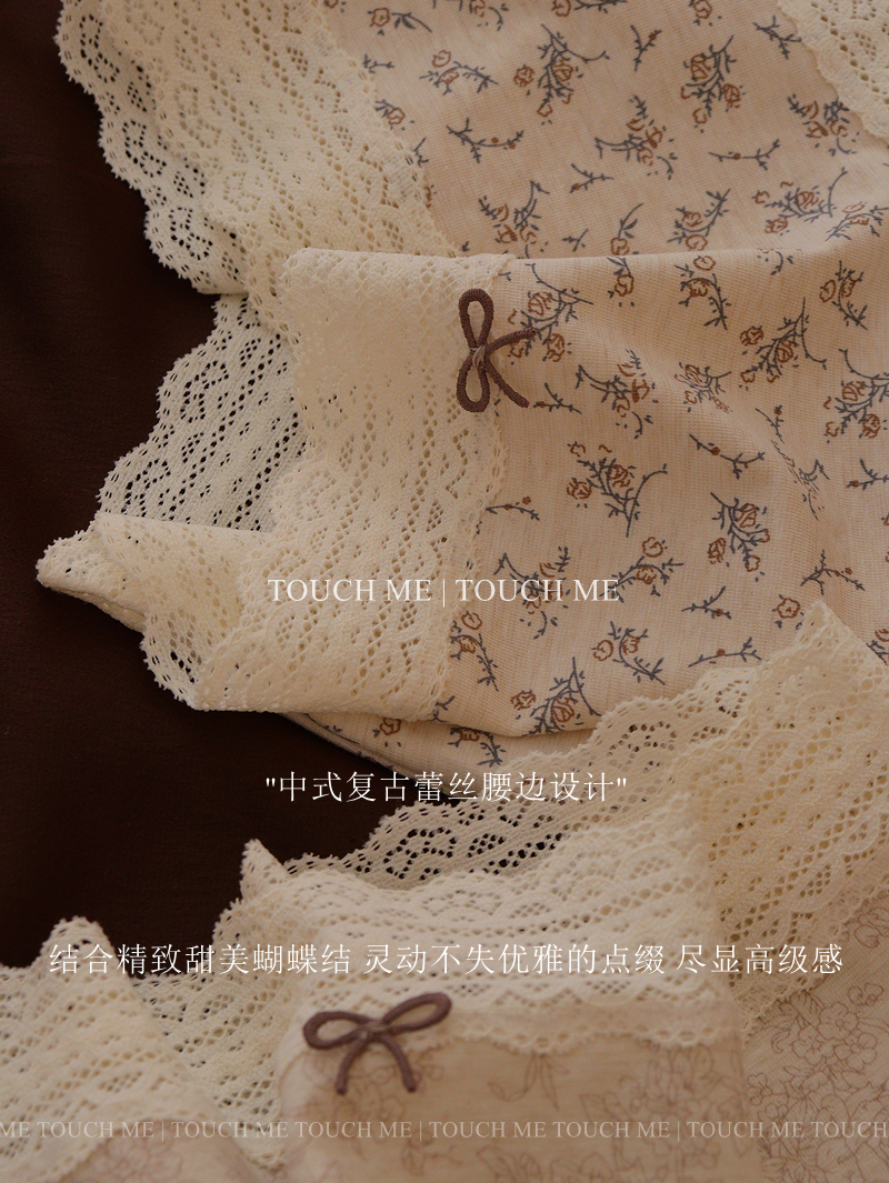 touchme中式復古繁花蕾絲邊純棉內褲女透氣薄款舒適抑菌襠中腰3條