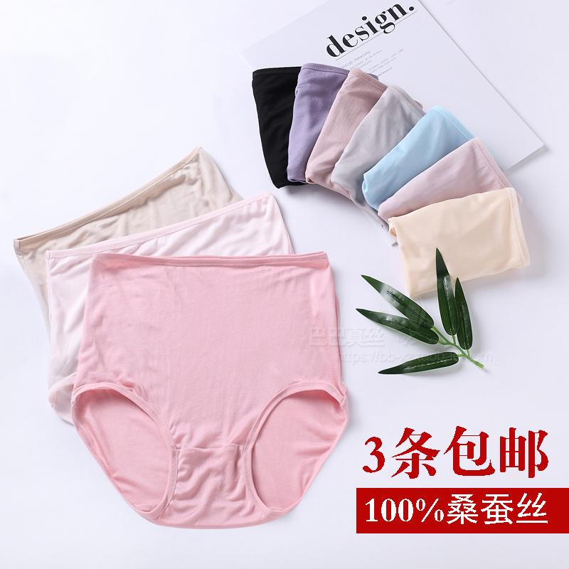 高腰純色真絲內褲女桑蠶絲42針小平腳雙面針織包臀簡約三角短褲頭