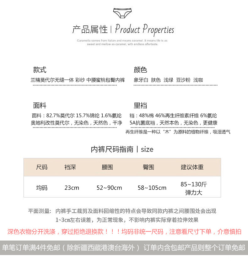 彩紗無染色蘭精莫代爾無縫內褲女士中腰包臀無痕短褲5A抗菌襠1108