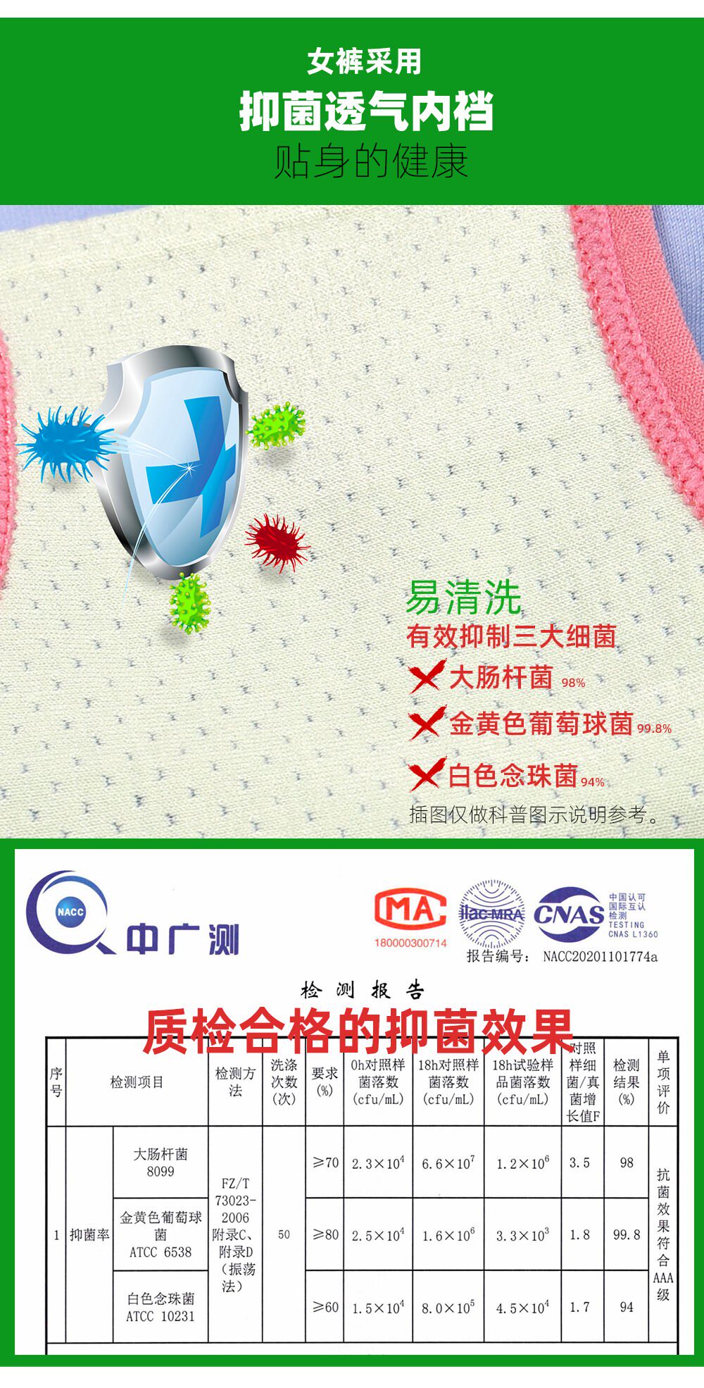 | 襠部材質成分 | 粘膠纖維(粘纖)93.4% 聚氨酯彈性纖維(氨綸)4% 聚醯胺纖維(錦綸)2.6% |