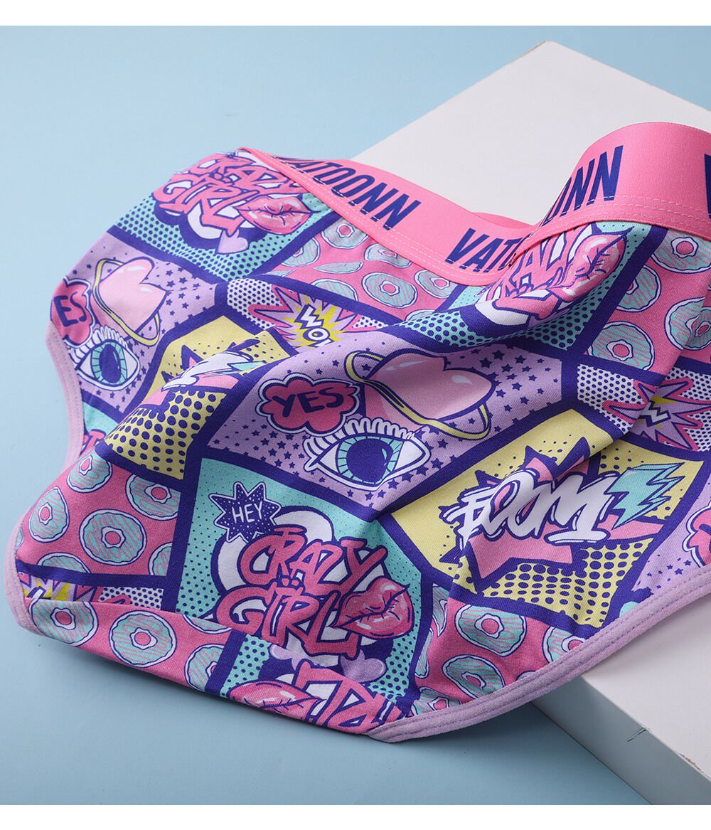 女士內褲純棉三角可愛印花中腰收腹寬腰帶抗菌襠透氣大碼性感夏季