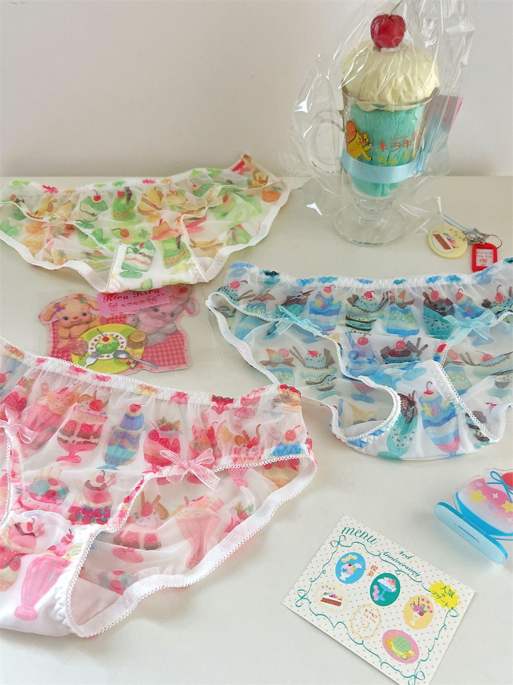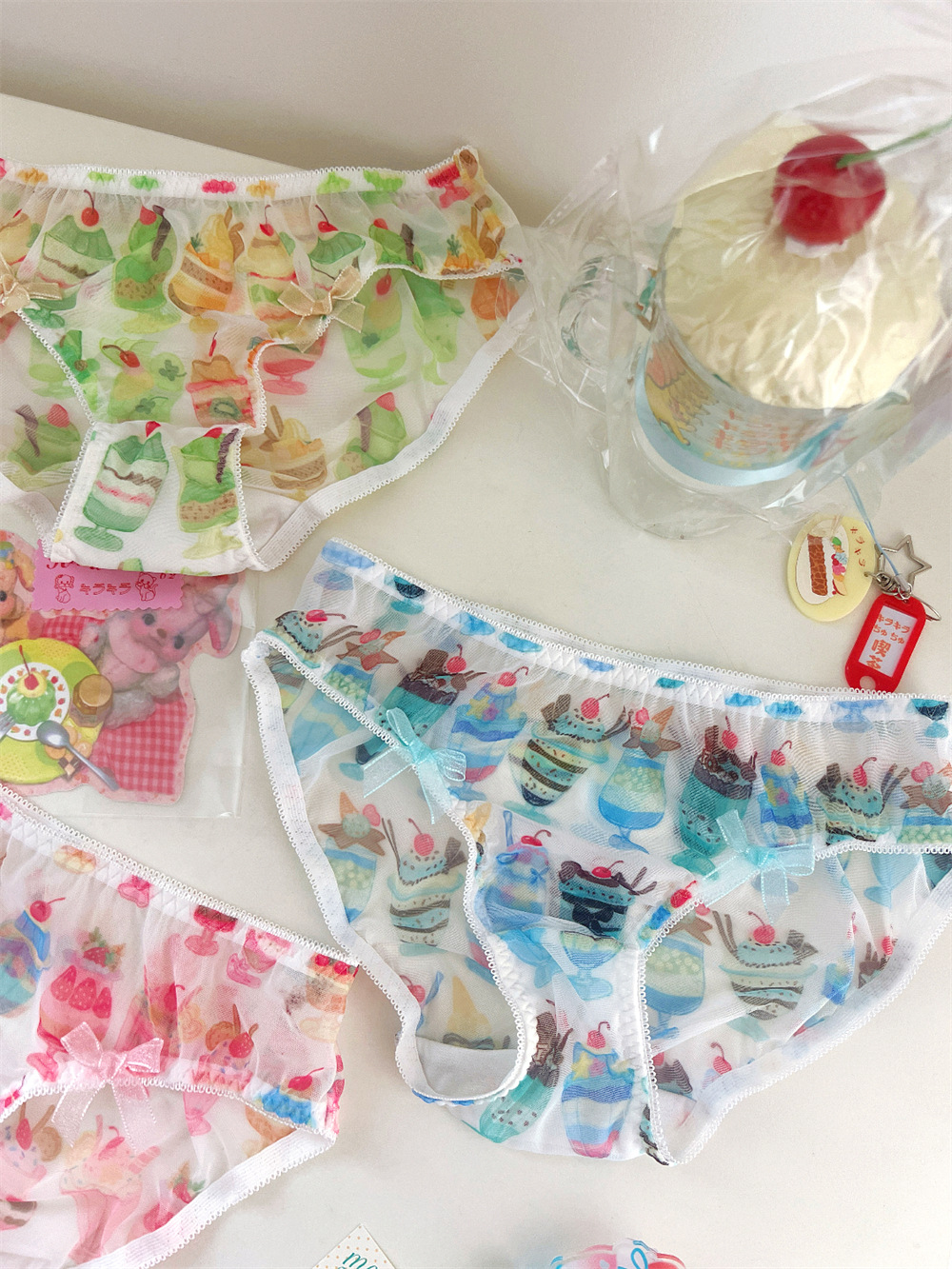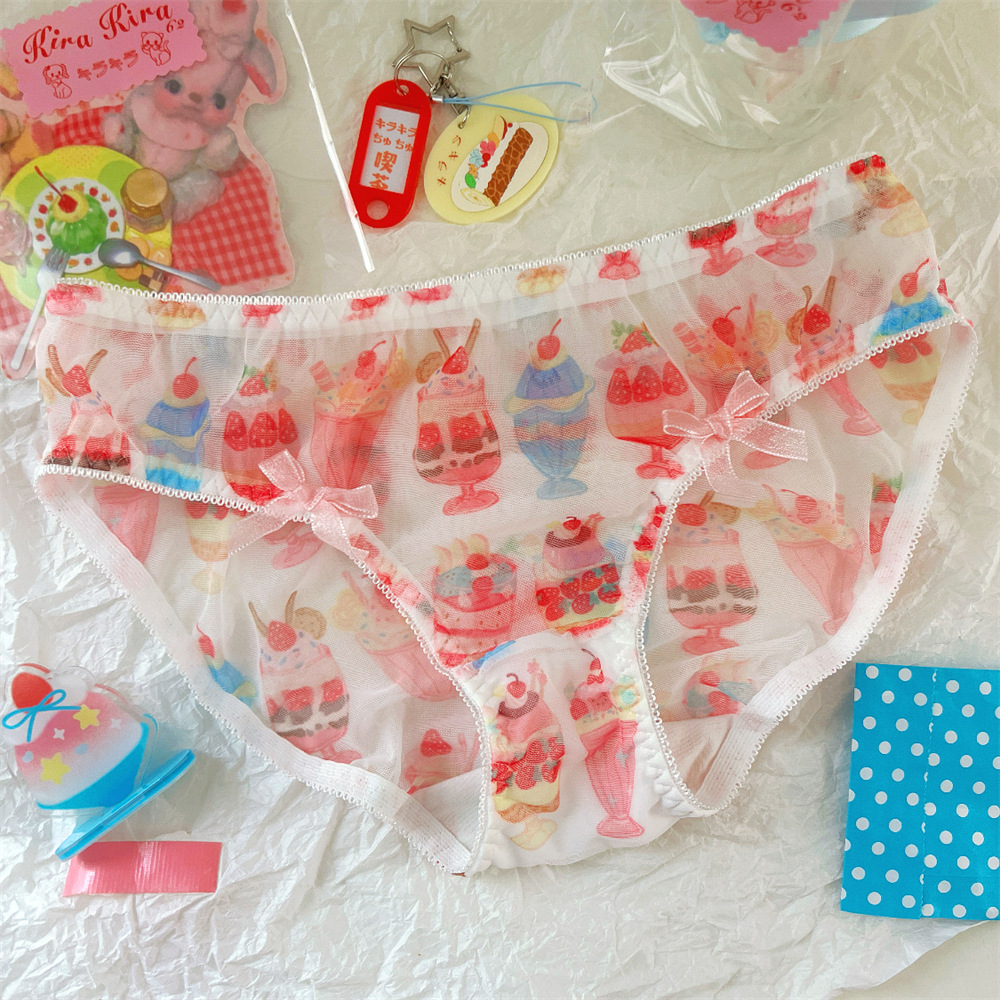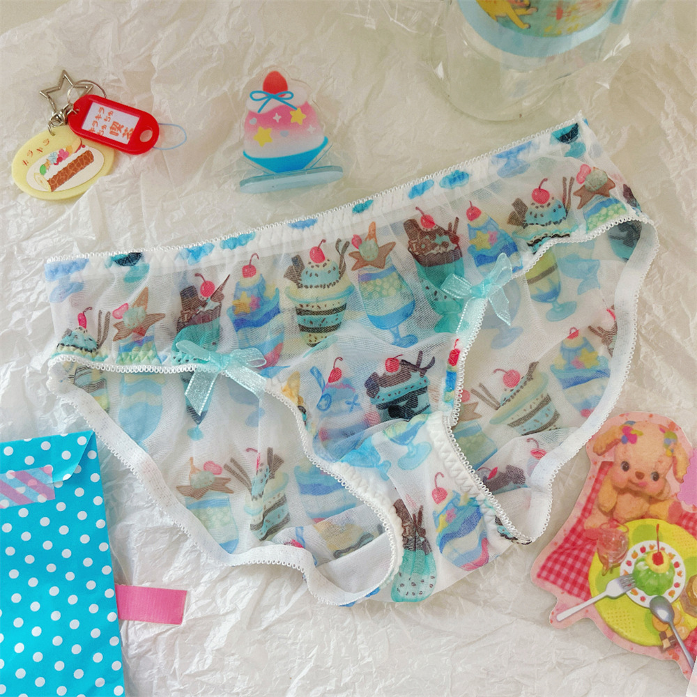 夏季新款昭和甜品復古冰沙網紗涼感透氣包臀彈力學生少女士三角褲