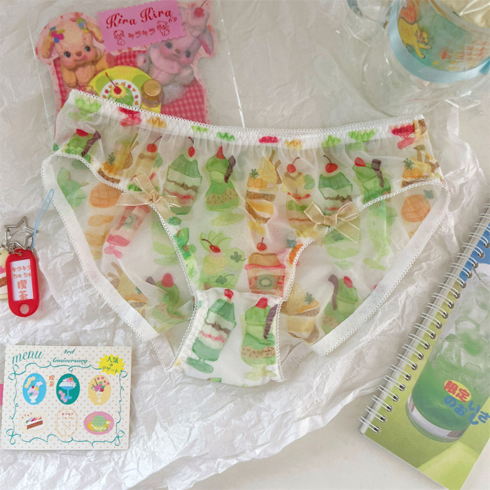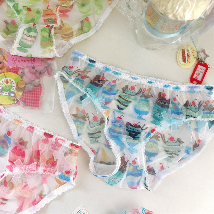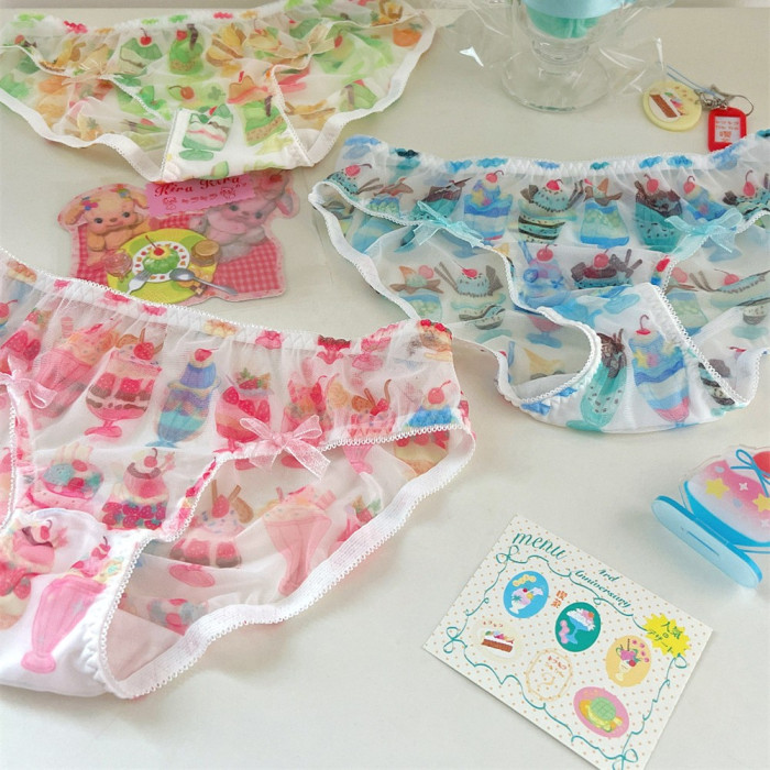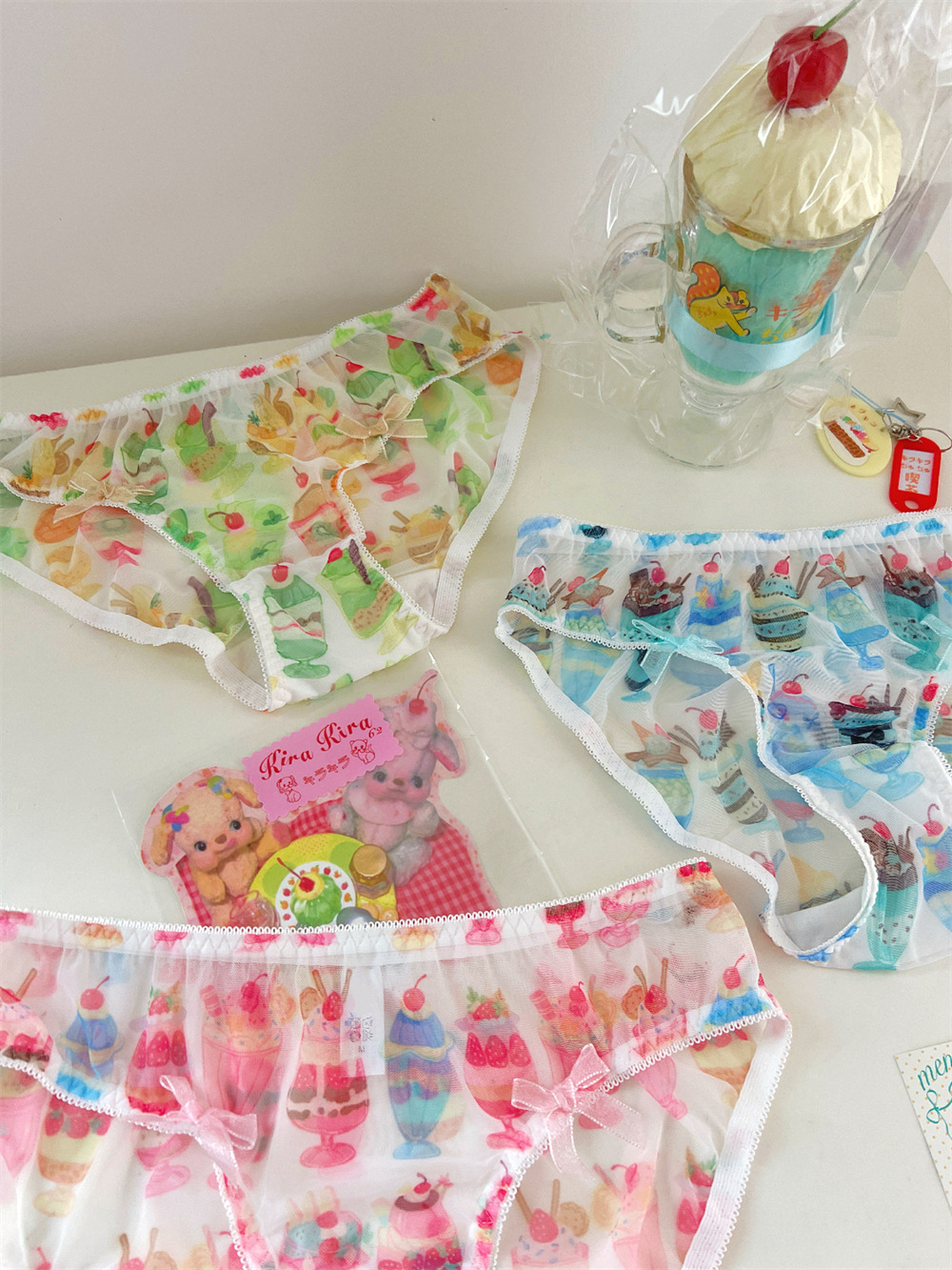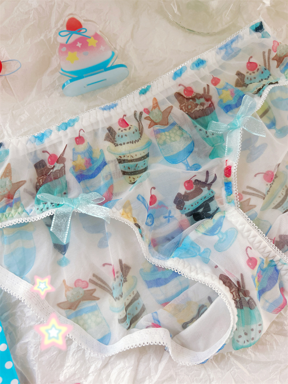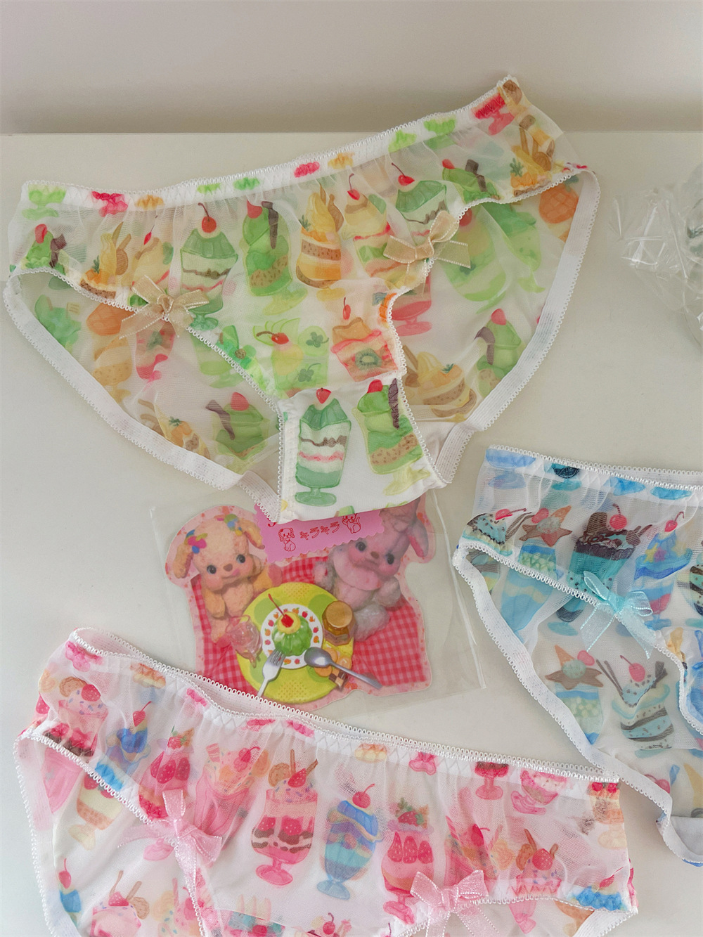 夏季新款昭和甜品復古冰沙網紗涼感透氣包臀彈力學生少女士三角褲