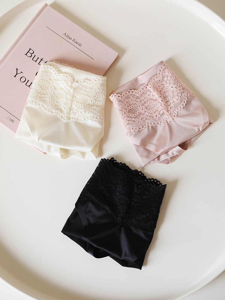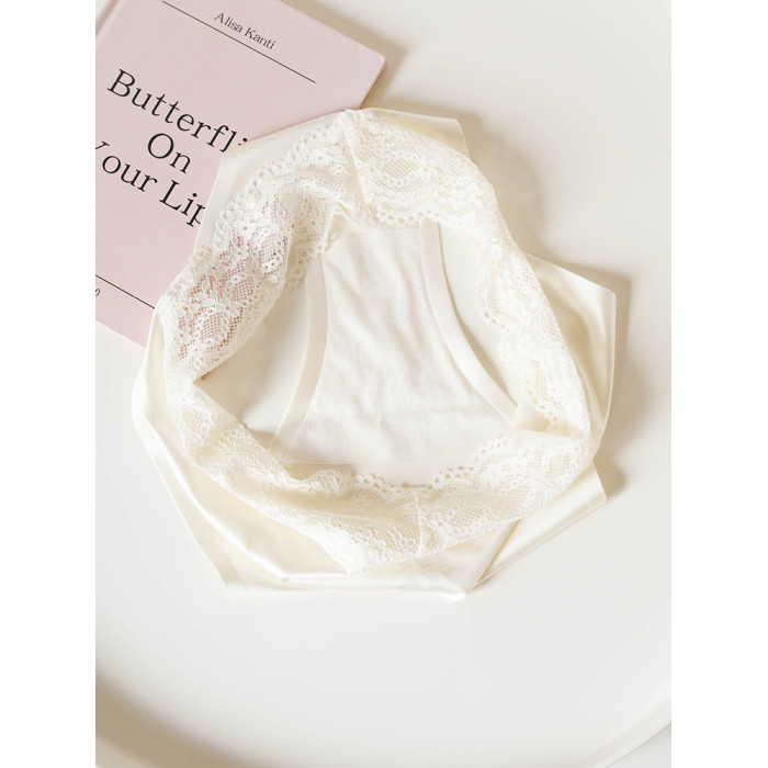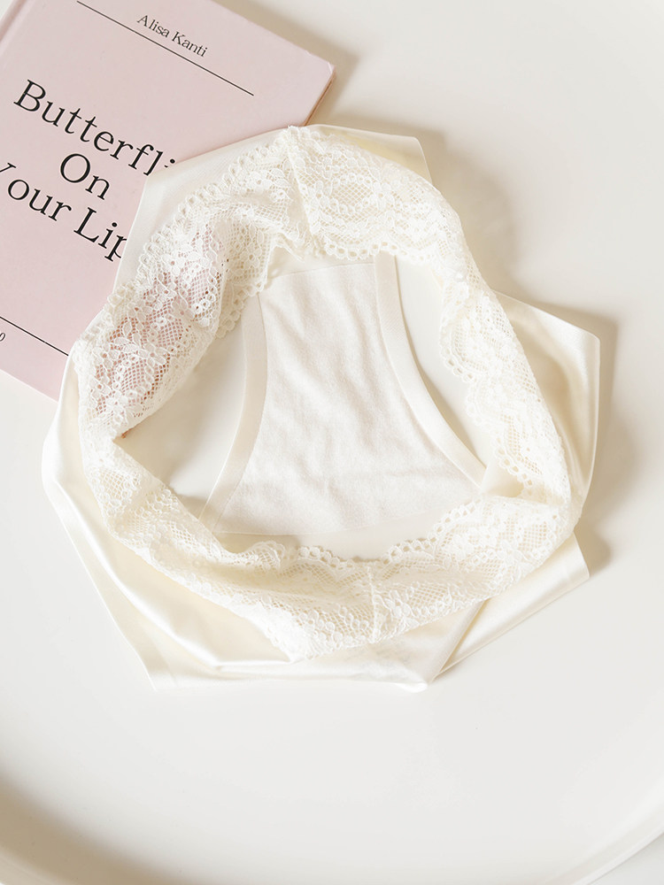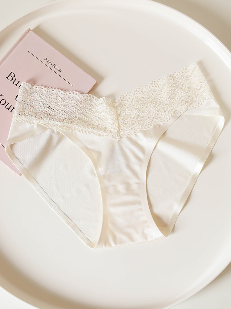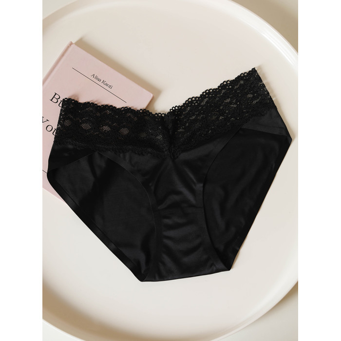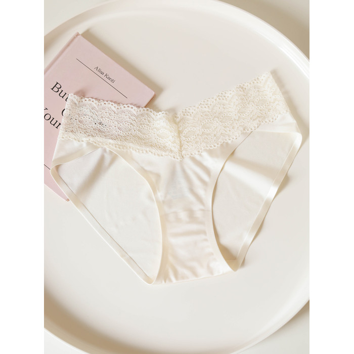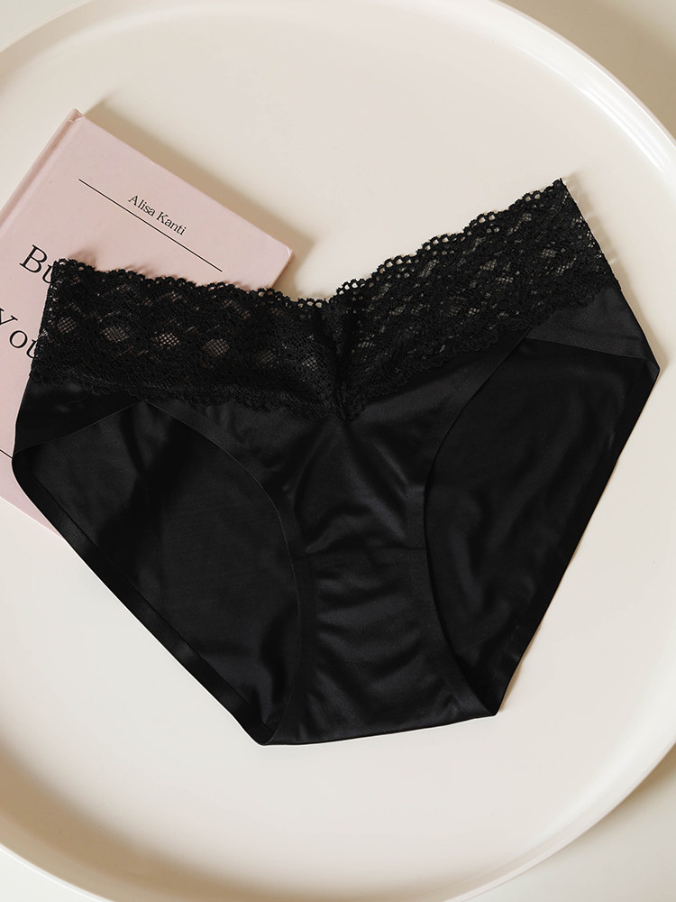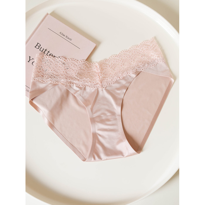 春癮~無痕緞面內褲女絲滑柔軟V形蕾絲花邊輕奢性感純欲低腰三角褲