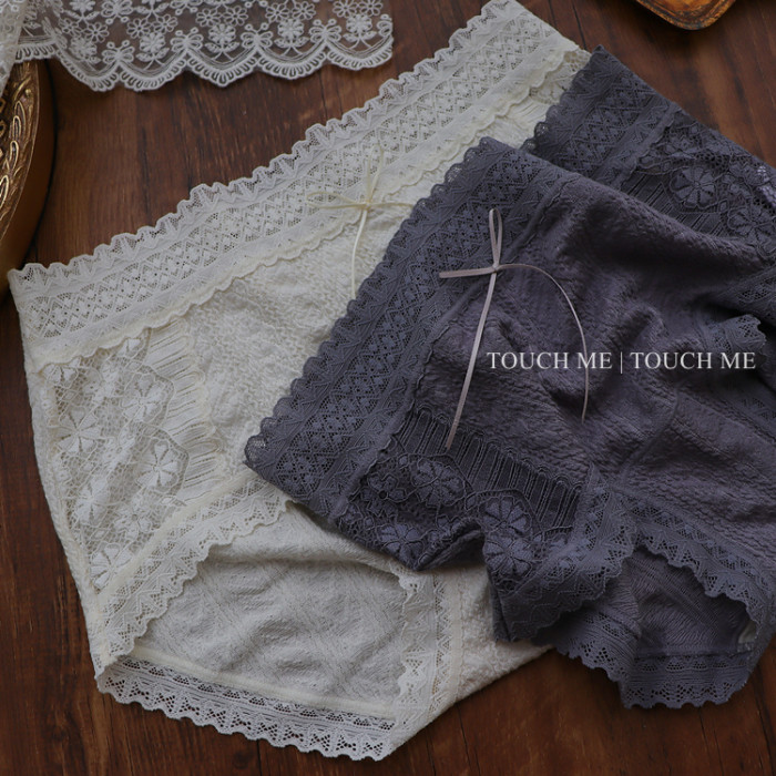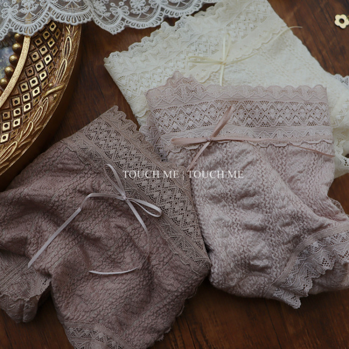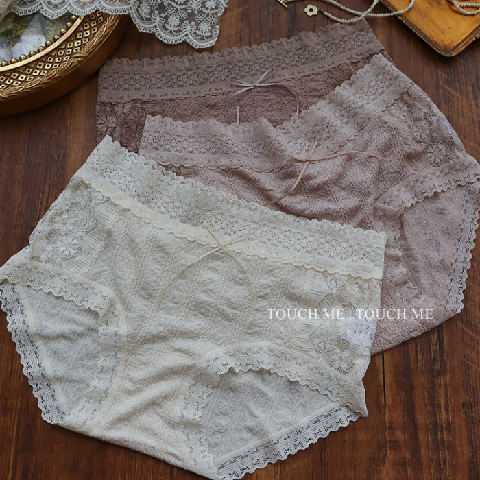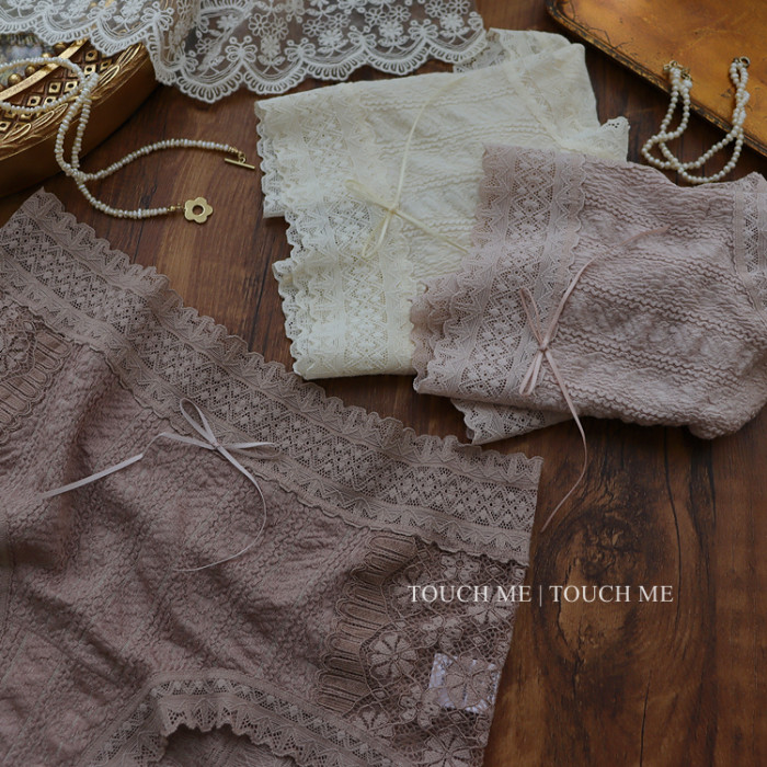 touchme法式蕾絲泡泡棉透氣內褲女性感舒適軟糯桑蠶絲抗菌襠3條裝