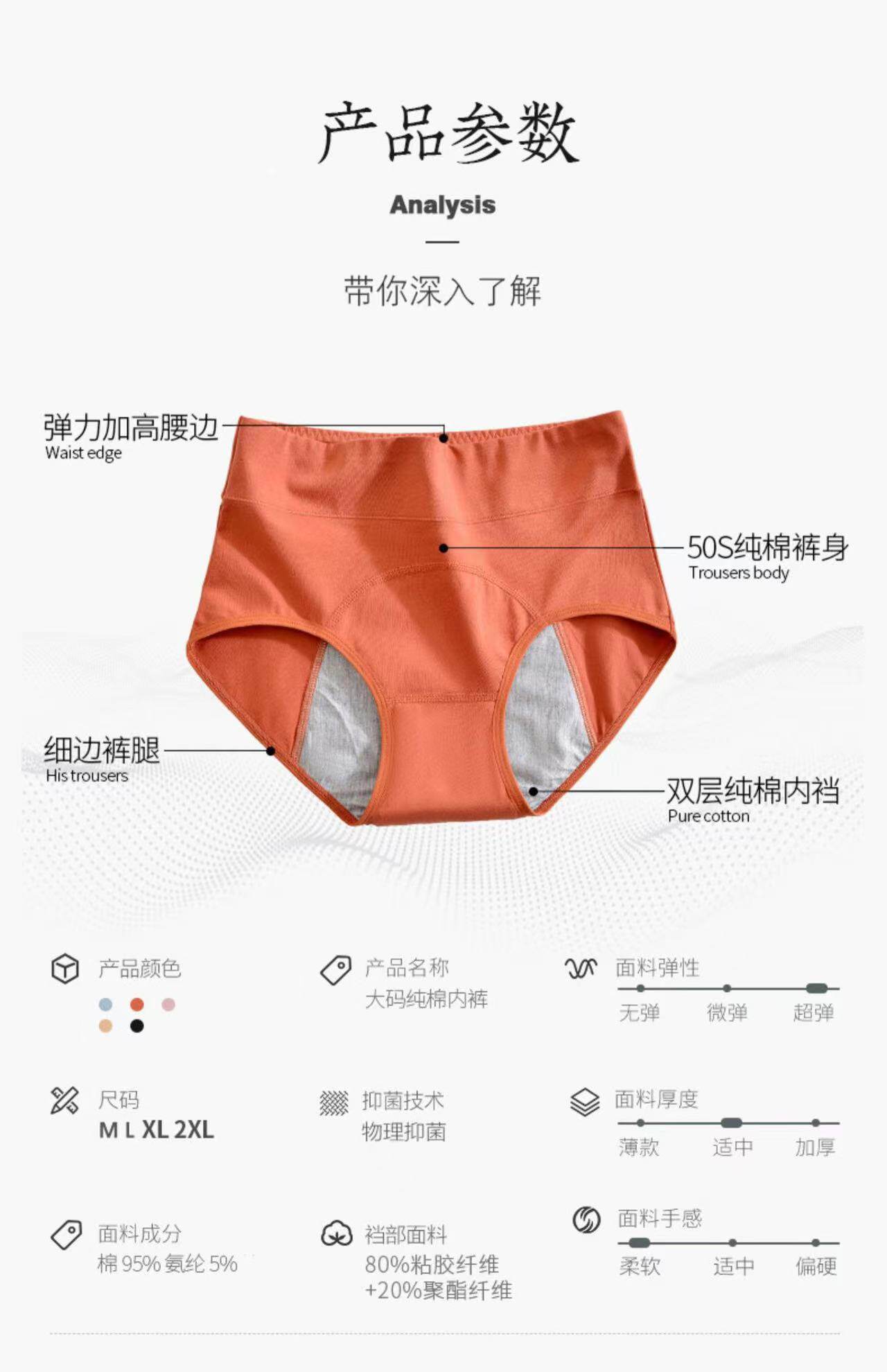 月經期安全褲防漏高腰收腹提臀加寬純棉抗菌檔女士生理期全棉內褲