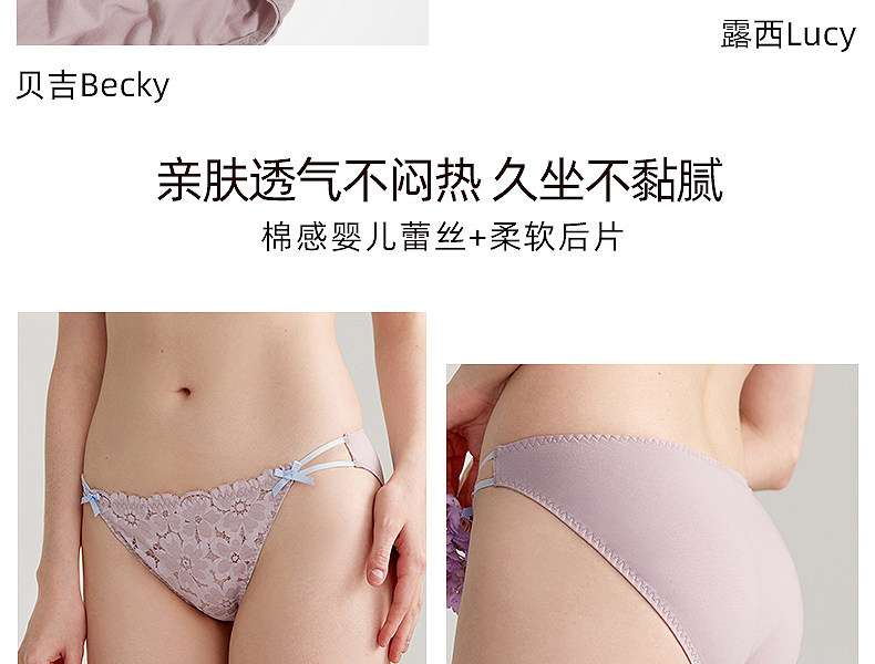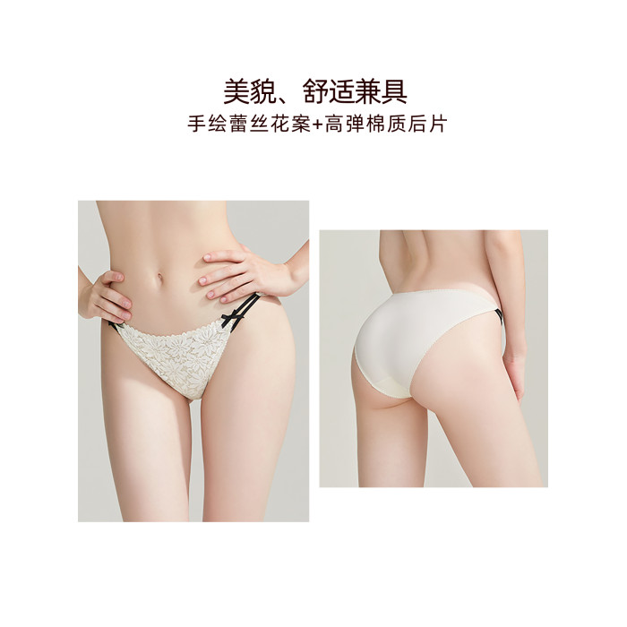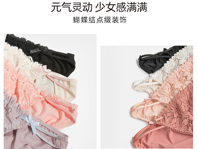 3條98元好奇蜜斯蕾絲內褲女薄性感純欲日系低腰純棉抗菌襠三角褲