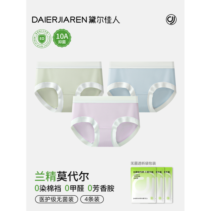 黛爾佳人莫代爾無痕內褲女士2025新款純棉襠10A全棉襠透氣三角褲