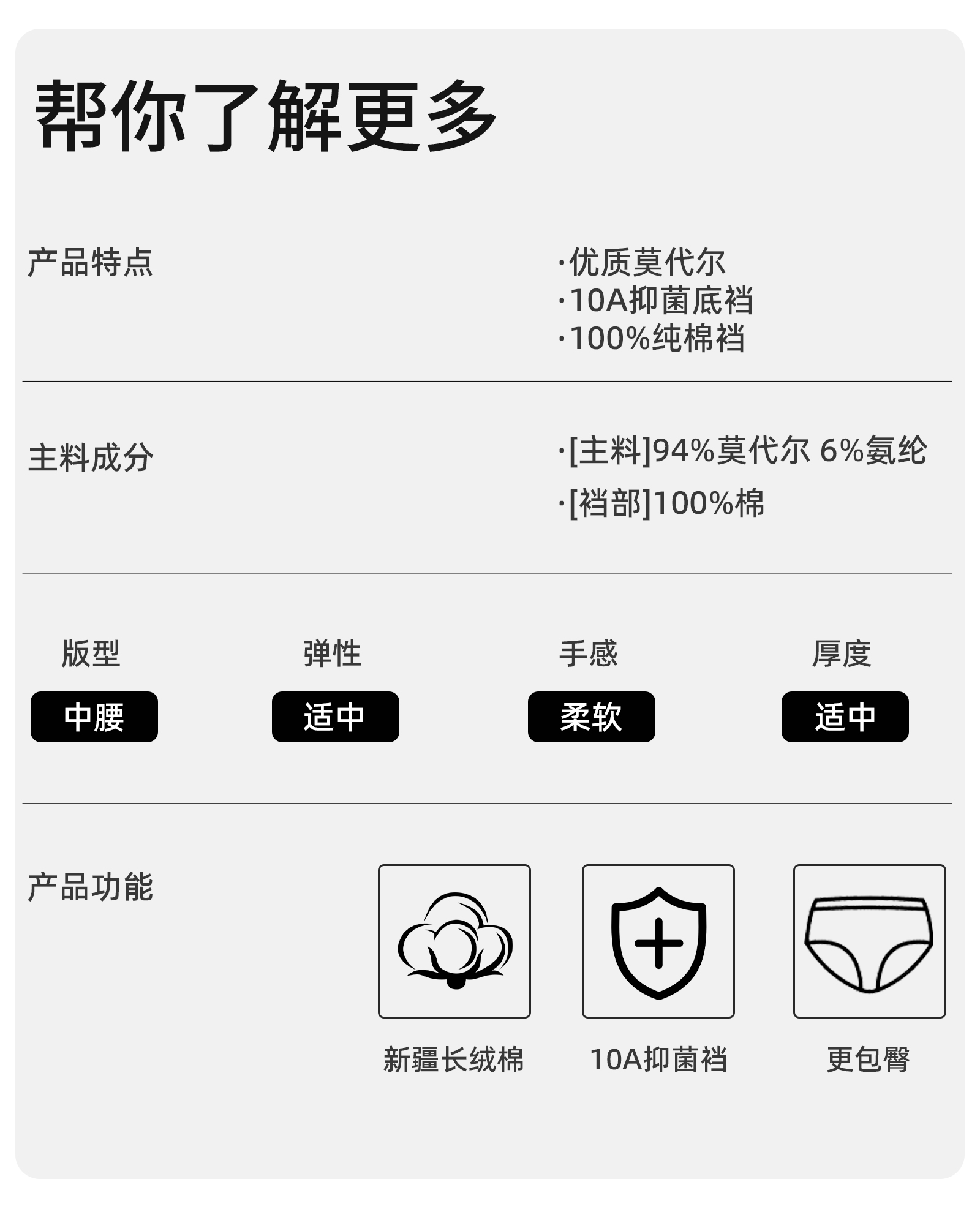 材質成分 莫代爾纖維(莫代爾)94% 聚氨酯彈性纖維(氨綸)6%