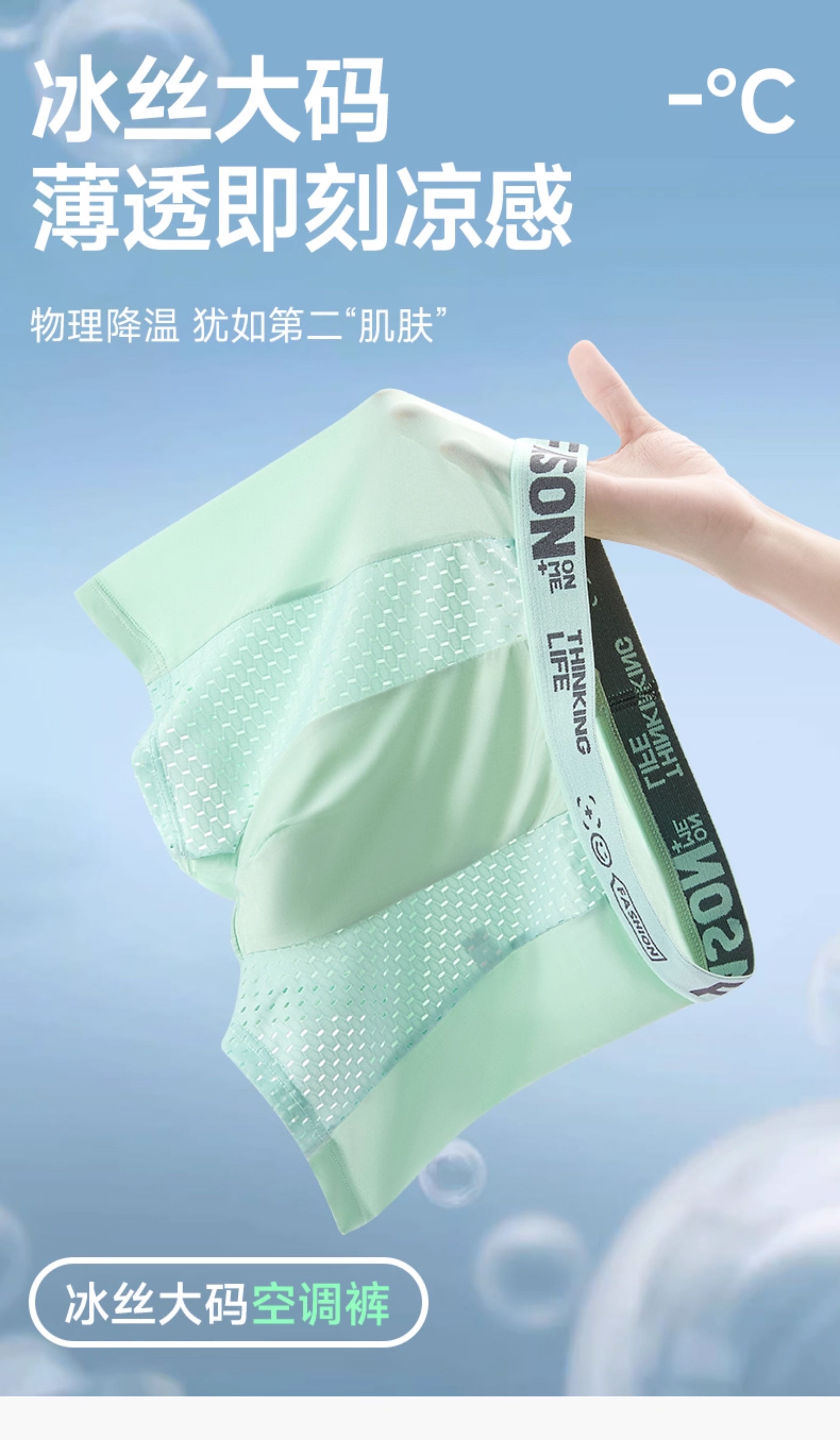 雅鹿男士內褲防隂囊抗菌潮溼夏季加肥加大碼透氣冰絲男款四角短褲