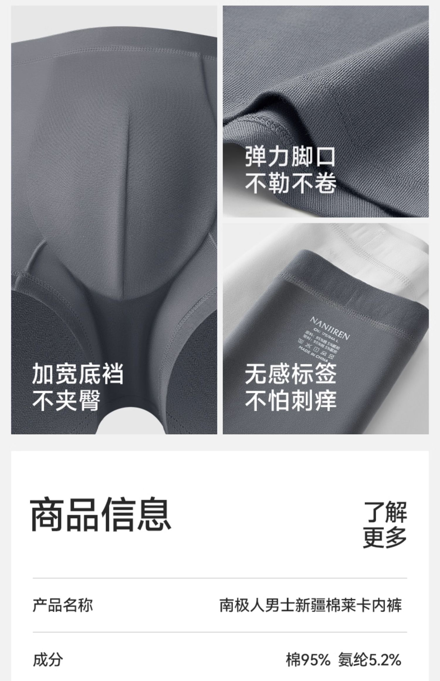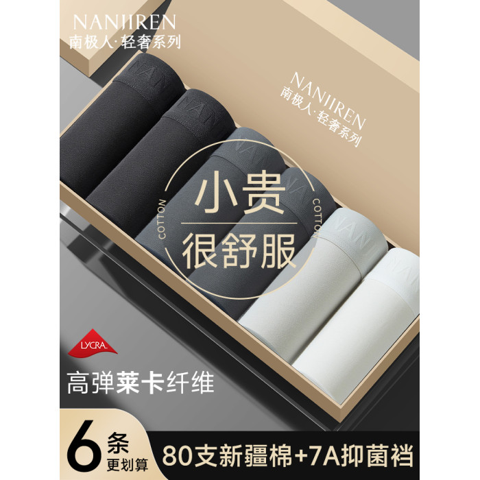 南極人純棉男士內褲男生四角褲頭抗菌透氣平角短褲衩男款2025新款