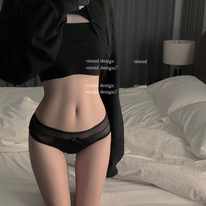 「LA」濃情山崎*原創性感簡約蕾絲網紗蝴蝶結日常舒適女三角內褲