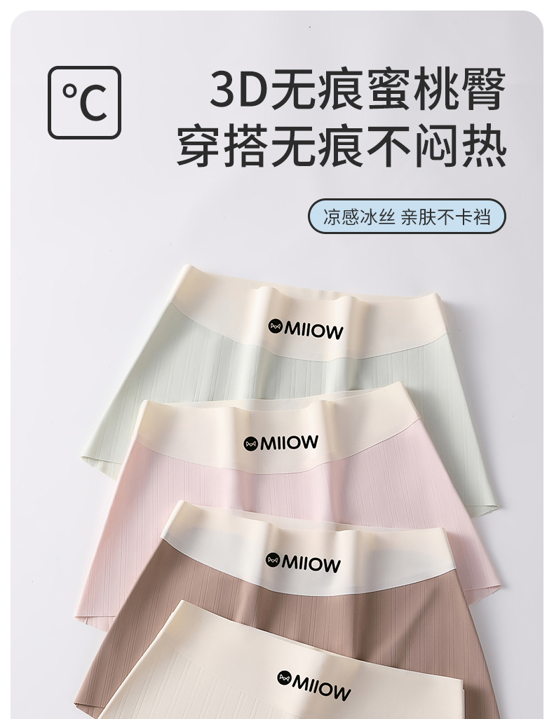 貓人無痕冰絲平角內褲女士夏季薄款純棉襠10A抑菌不夾臀四角短褲T