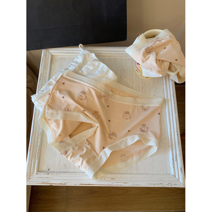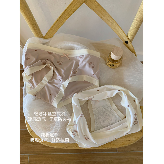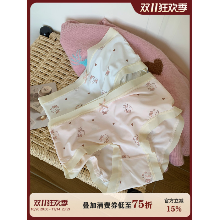 馨幫幫Bra 甜美可愛卡通貓咪冰絲內褲女純棉襠透氣抑菌學生三角褲
