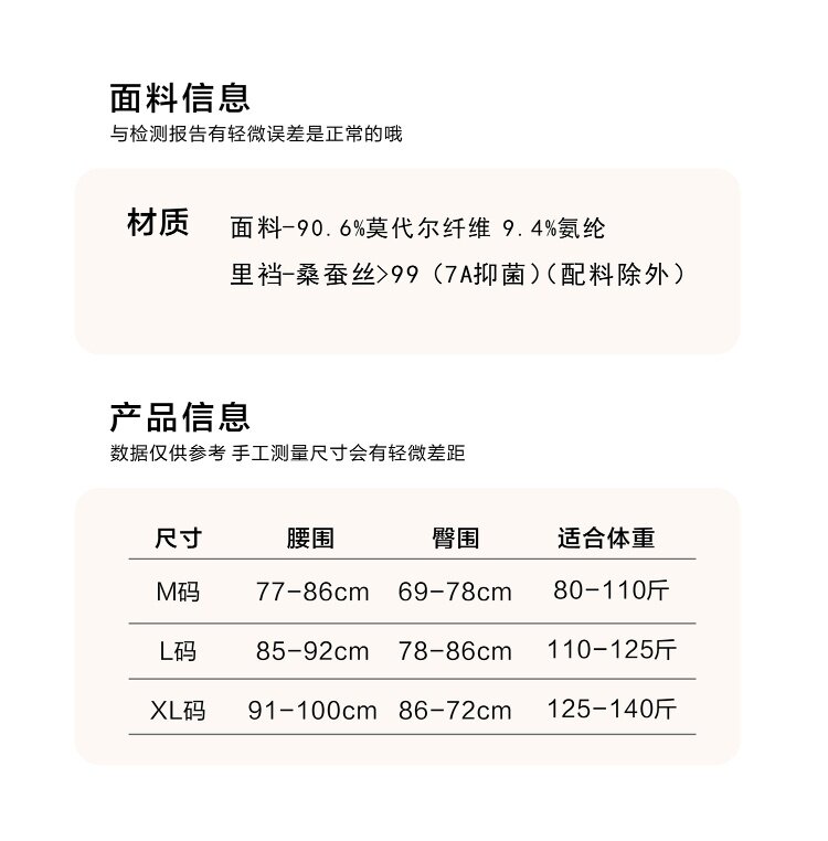 襠部材質成分 莫代爾纖維(莫代爾)90.6% 聚氨酯彈性纖維(氨綸)9.4%