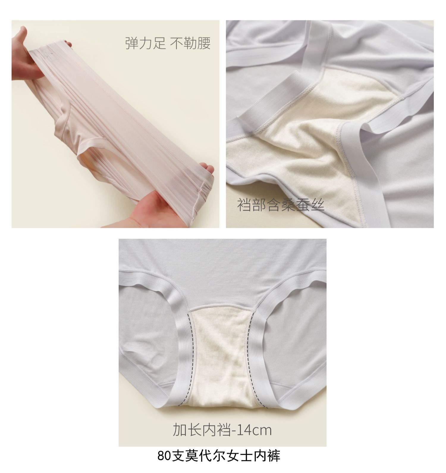 A類女士中低腰內褲 80支莫代爾 7A抑菌桑蠶絲加長內襠 四季款