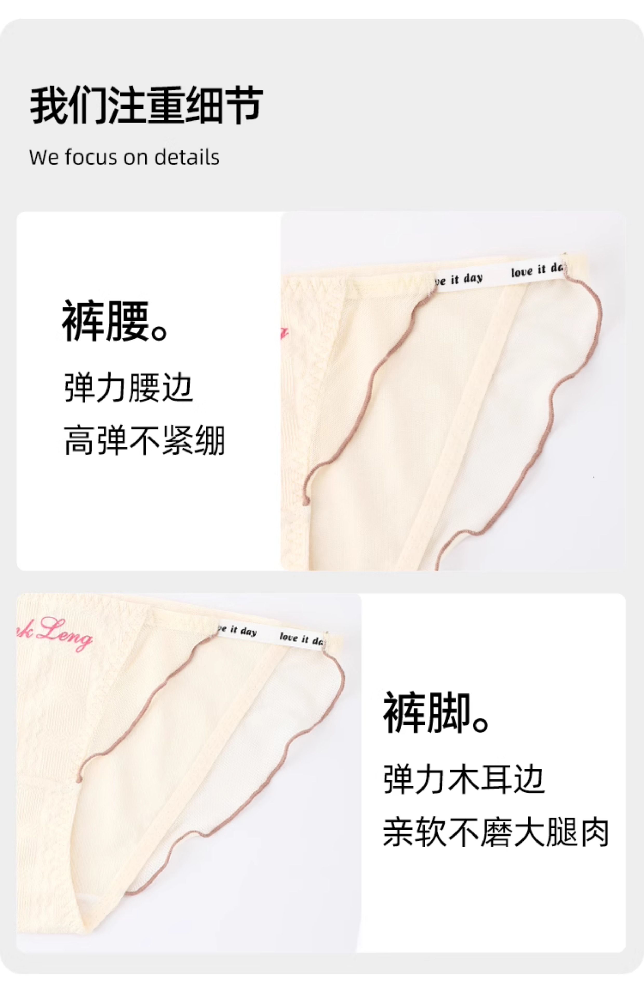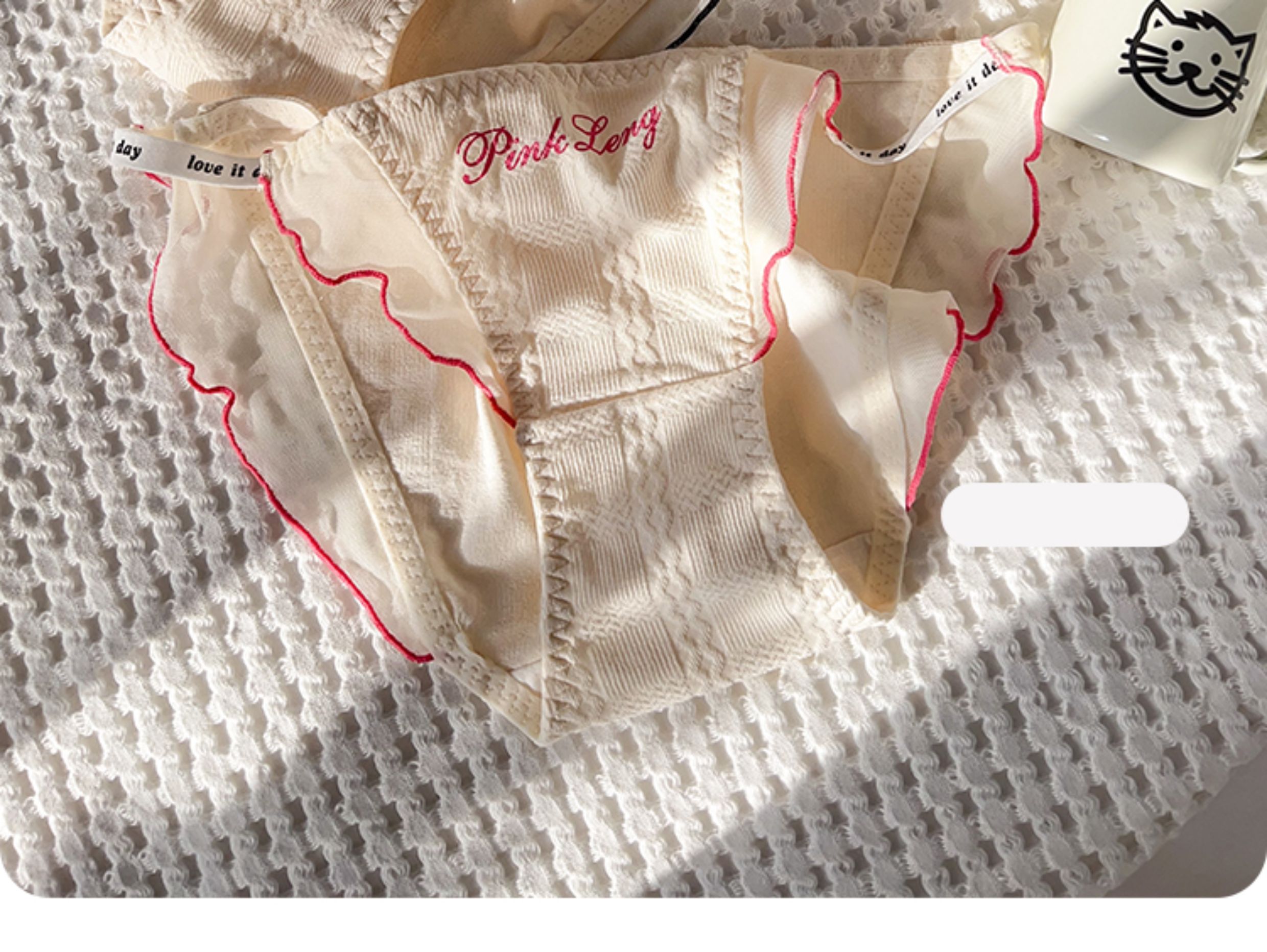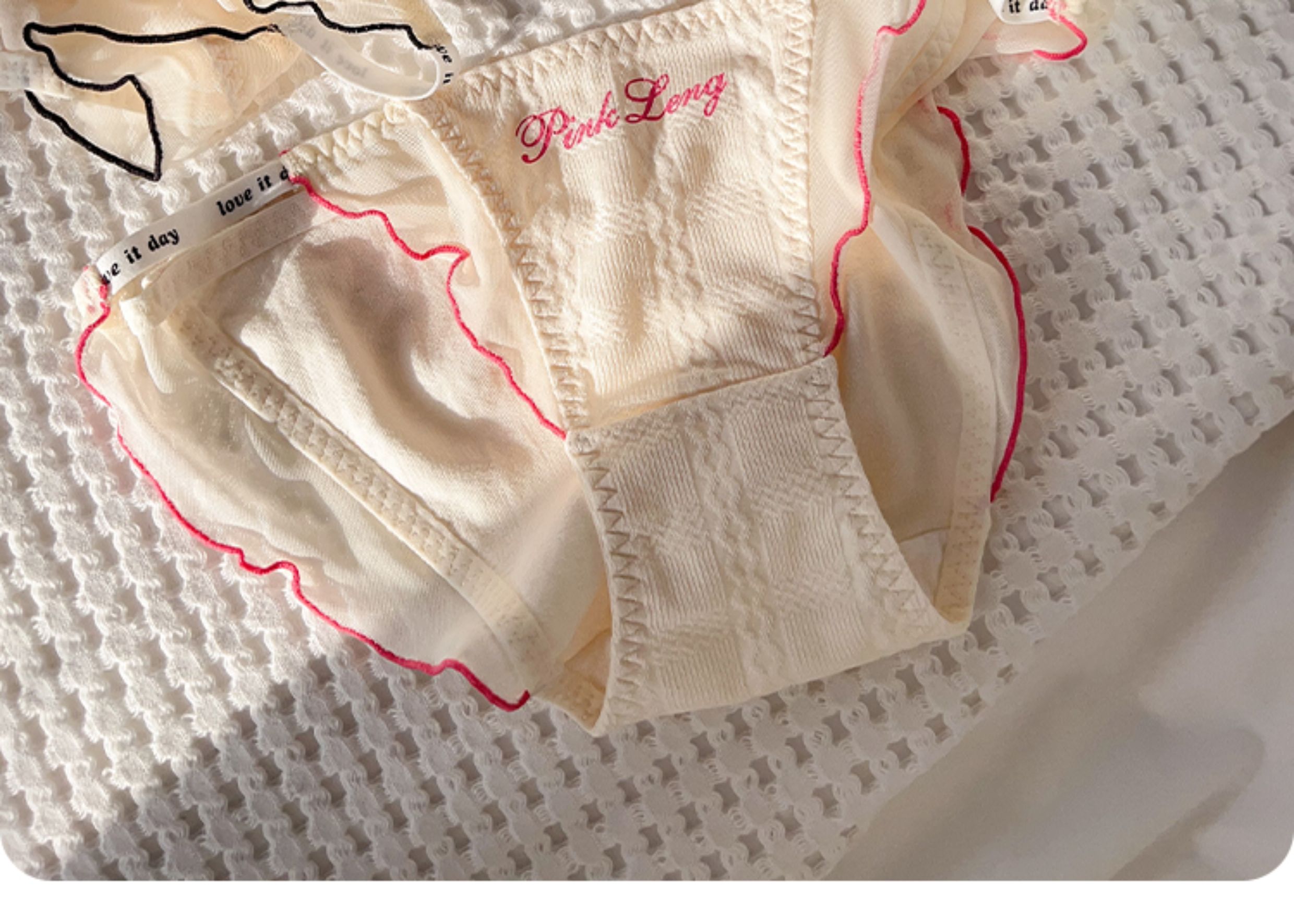 六衹兔子甜美純欲風內褲女純棉底襠木耳邊女士三角褲短褲中腰褲頭