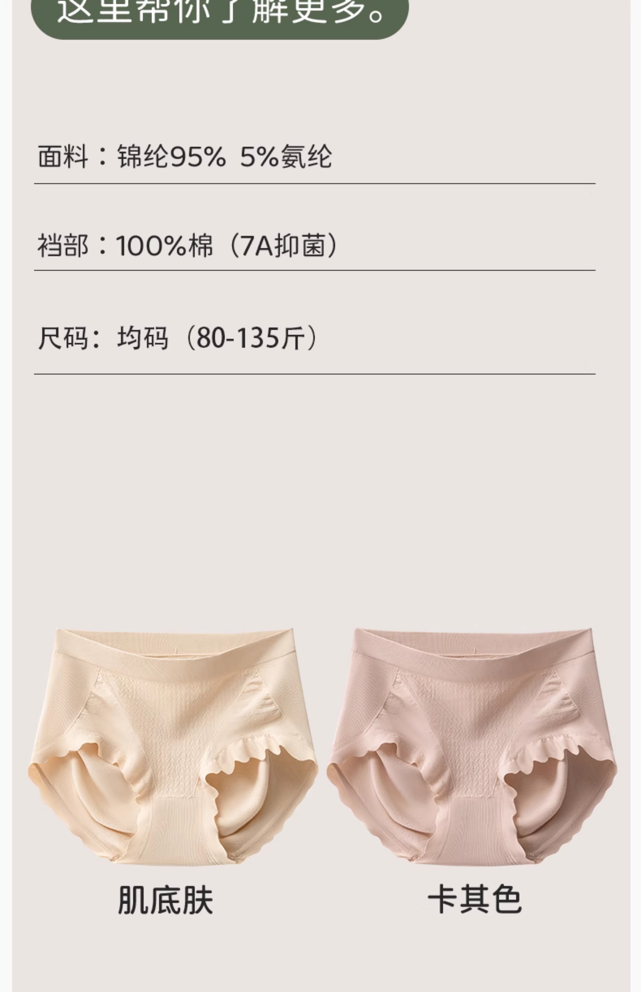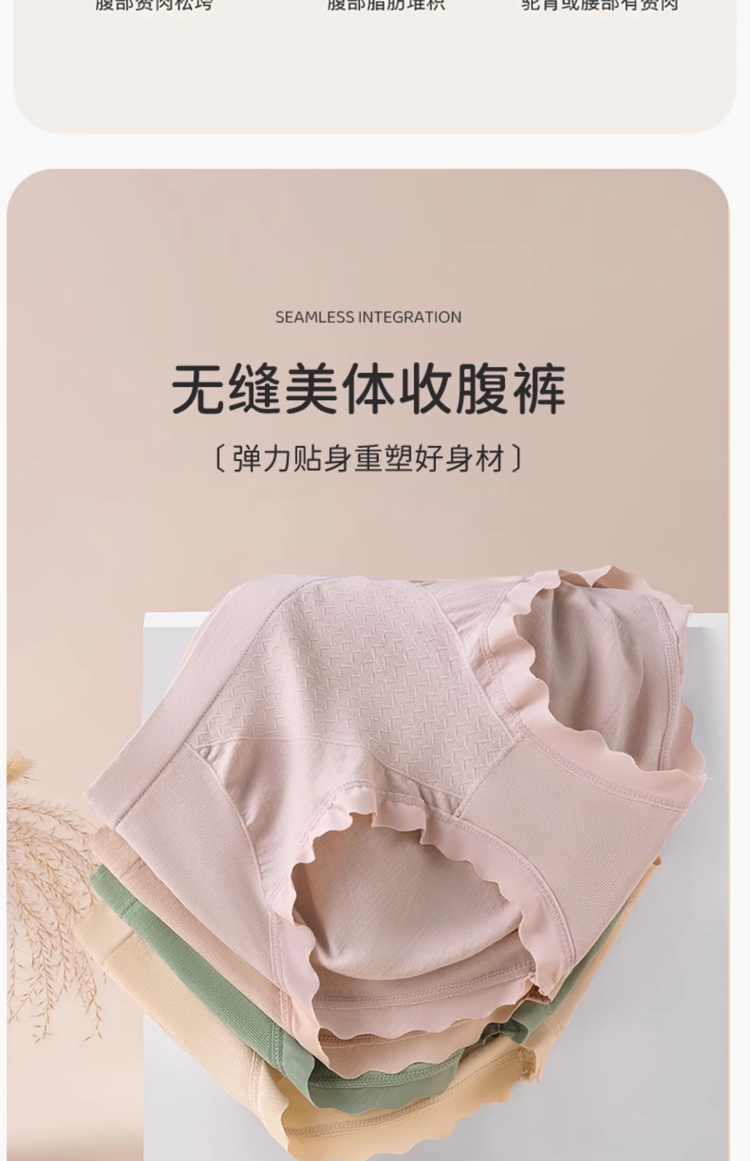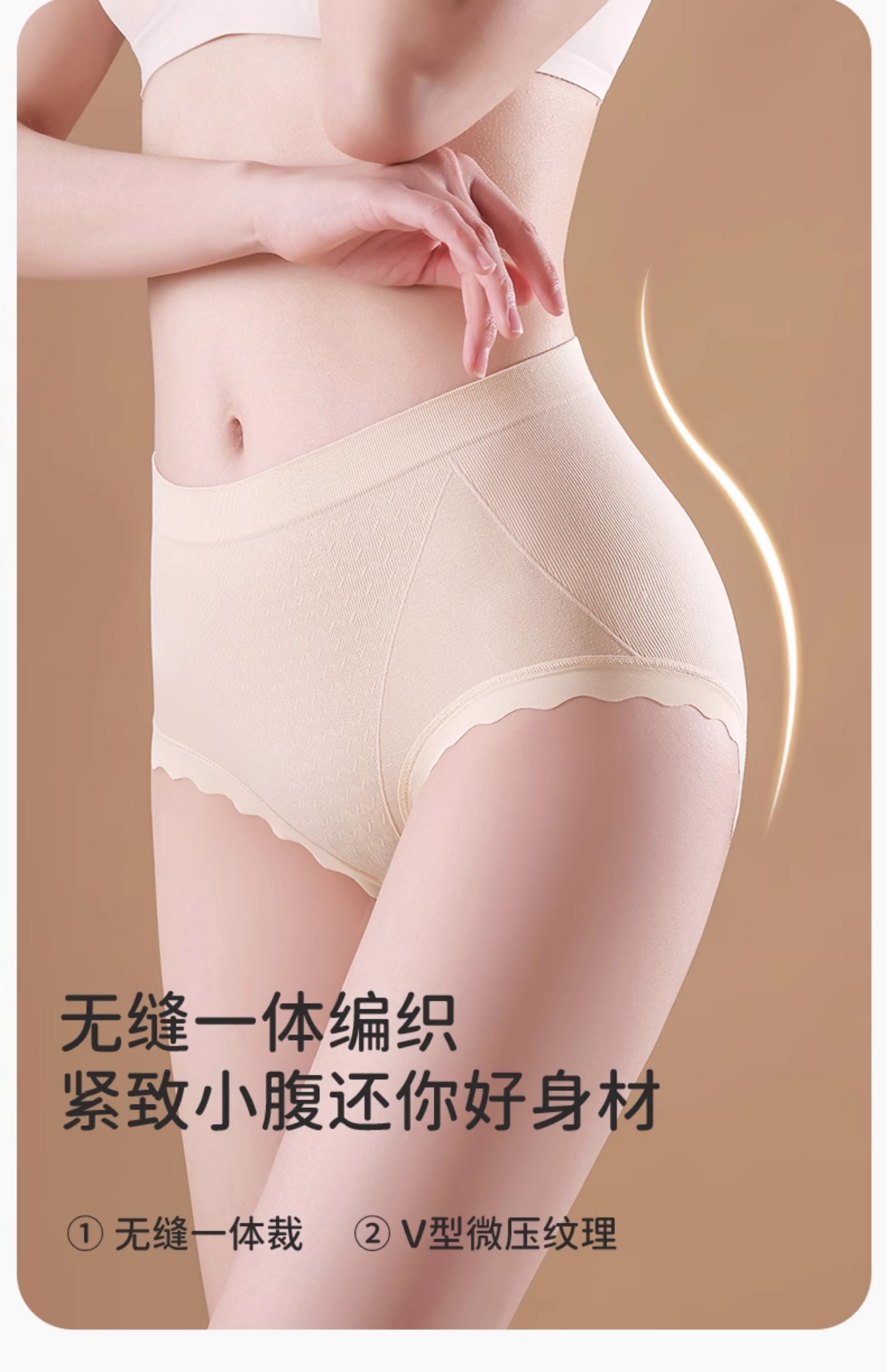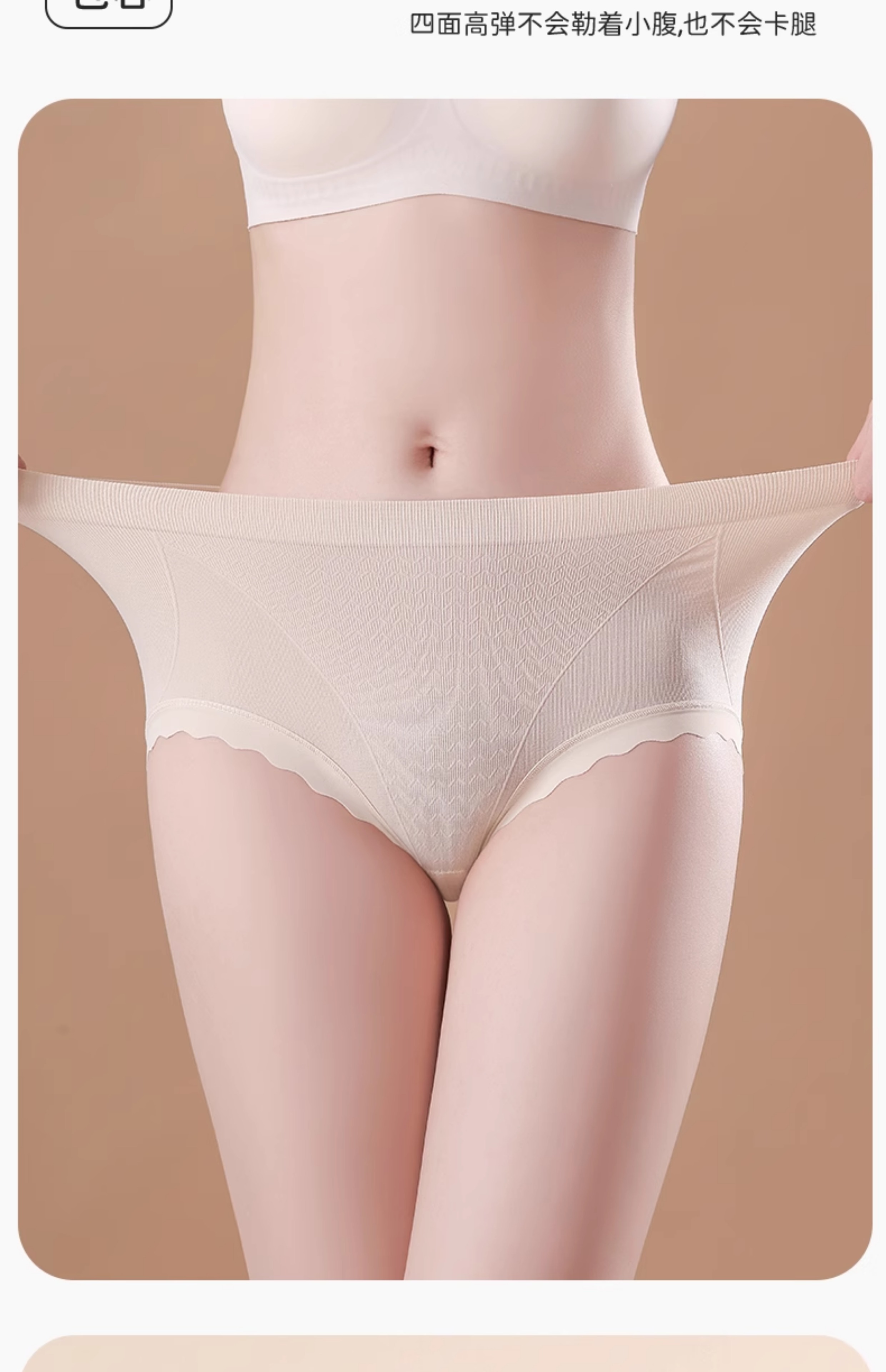貓人內褲女士純棉全棉襠中高腰收小腹無痕不夾臀女生抑菌三角短褲